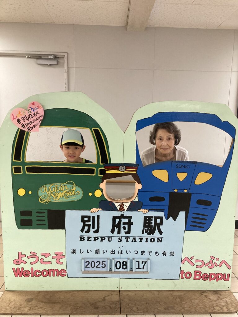 遂に別府駅に来ました。長くて楽しい日々も今日で一旦終了です。絹さん色々とありがとう!また年末に帰って来るので、それまで元気で過ごして下さい!