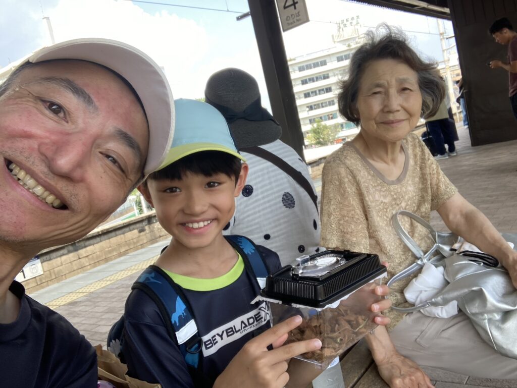 午後から暴れん坊おじちゃんが来て、お昼にピザを食べました(画像無し)。おじちゃんはピザのMサイズを1人で食べるようなので、足りなかったようです。夕方に荷物を送りに行って、少し虫取りに行って来ました。夕飯は絹さんがすき焼きを作ってくれたので、美味しく頂きました!