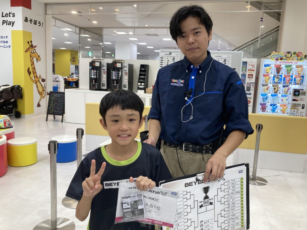 今日は盆休みの大分大会以来出場出来ていないベイブレードxの大会へ行って来ました。抽選なので、参加出来ないことが続いていましたが、今回は約1ヶ月ぶりに参加できました。久しぶりなので、緊張するかと思いきや、冷静な試合運びで危なげなく勝ち進みました。優勝決定戦でもストレート勝ちで、見ている方は面白みが無かったようですが…とにかく、毎日の練習の成果が出ていました。よく考えると、2戦連続優勝⁉︎