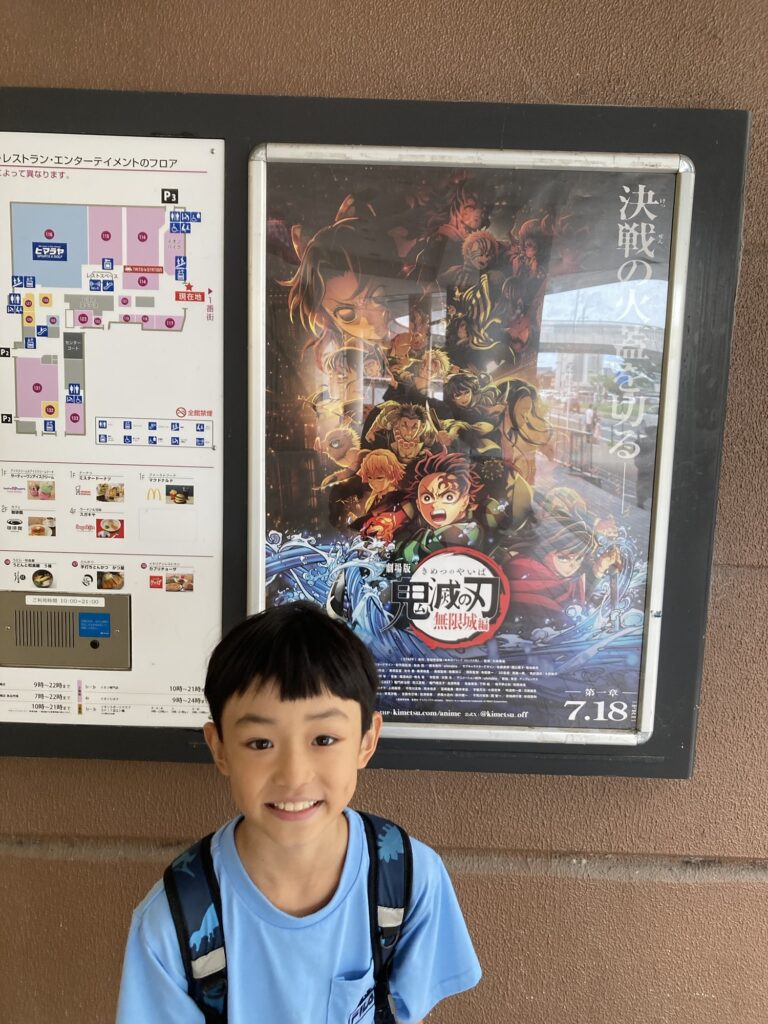 今日は突如映画館へ行く事になりました。どうやら周りで流行っている鬼滅の刃に興味を持ったようです。物語の初めしか観ていないので、間が抜けていたのですが、物語自体は理解できたようでした。それより、上映時間の2時間半トイレに行かなかったのが、一番の驚きでした!