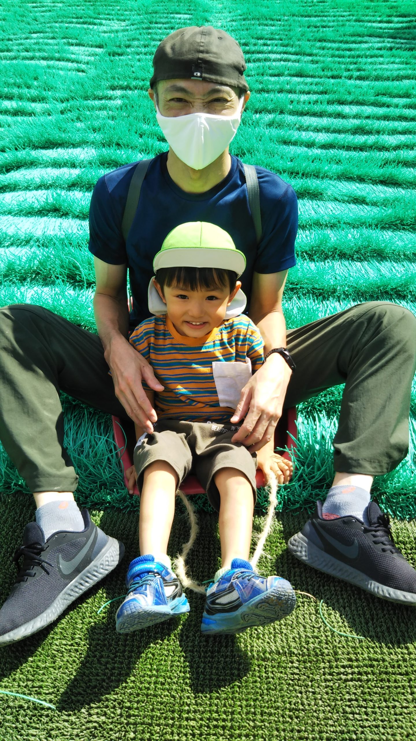 いつもはパパと一緒じゃないと乗らないのに、今日は一人頑張りました!