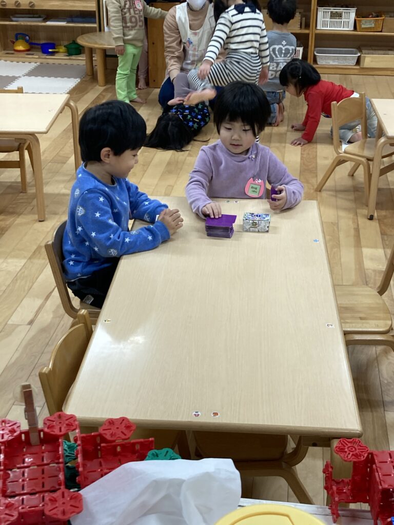 お迎えに行くと、楽しく2人で坊主めくりの真っ最中、10分程教室内で立たされていました。
