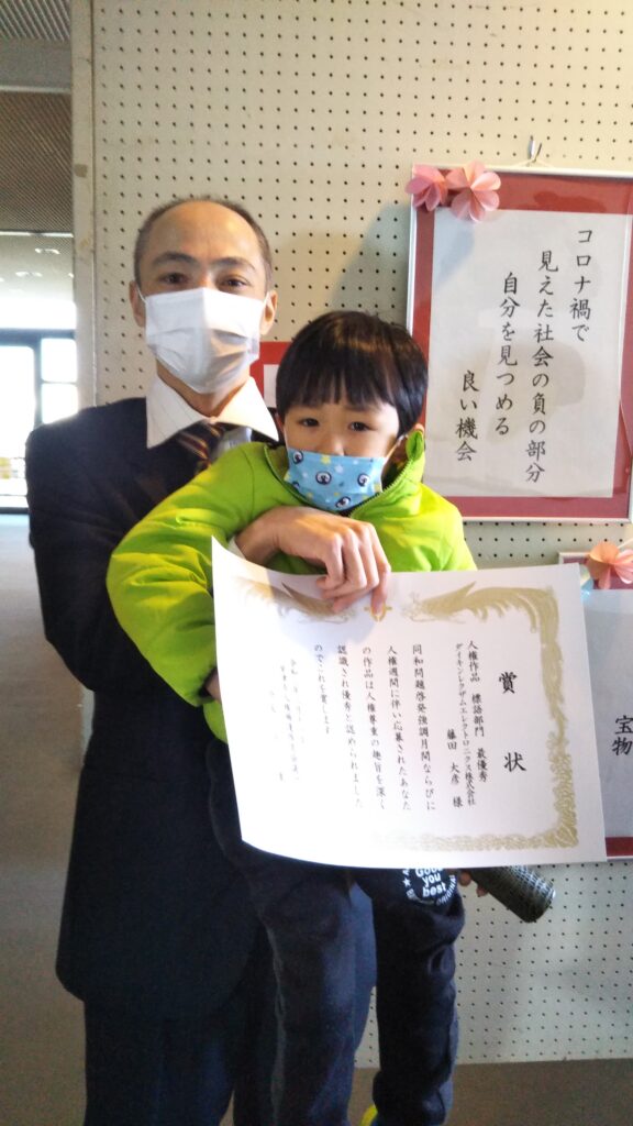 今日は草津市の人権作品表彰式に参加して、人権標語最優秀賞に選ばれたパパが表彰されました!約4,000件近い応募の中から選ばれたようで、市長から表彰状に図書カードが贈られました。その後は琵琶湖放送のインタビュー🎙とてもカッコ良かったです💖