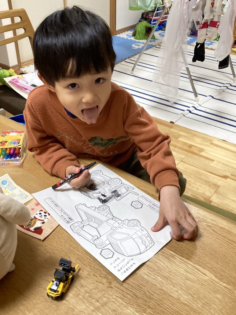 帰宅してから、ばけた君の塗り絵で遊んでました