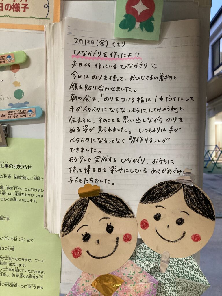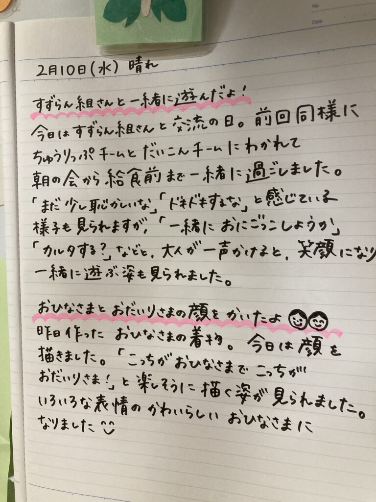 今朝は小雪がちらついていたけど、元気に登園しました。