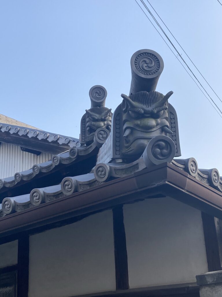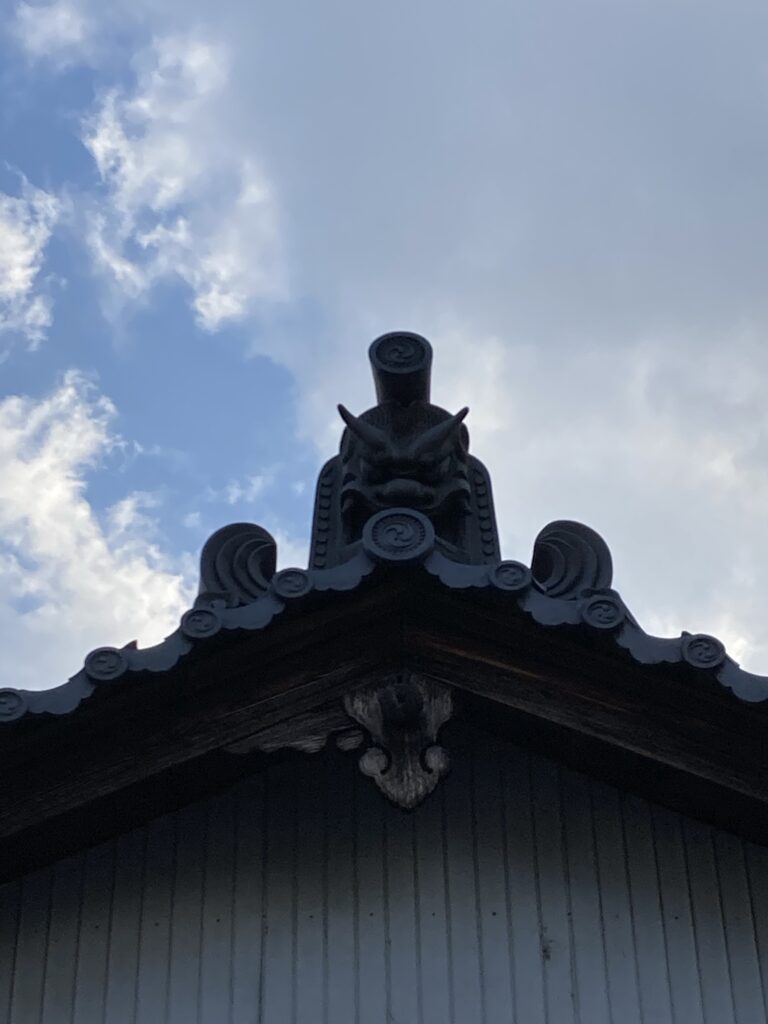帰宅途中のお寺の屋根に鬼瓦があるのを見つけました!