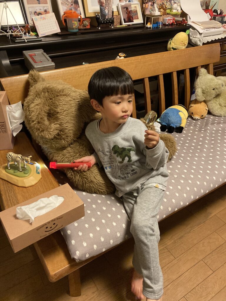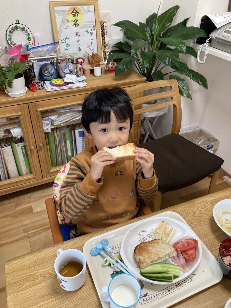 昨夜は寝るのが遅かったものの、7時前に起床!0655を見たからママを思い出したのか、少し涙ぐんでいました。しばらくしたら朝ご飯も食べてご機嫌になりました‼︎