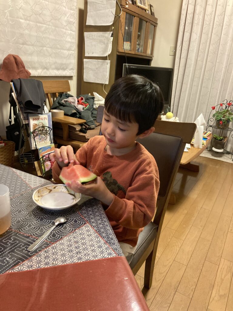 夕飯は、おにぎり4つ、梅うどん、サバの煮付け、野菜、糠漬け、スイカを平らげました‼︎絶好調です!