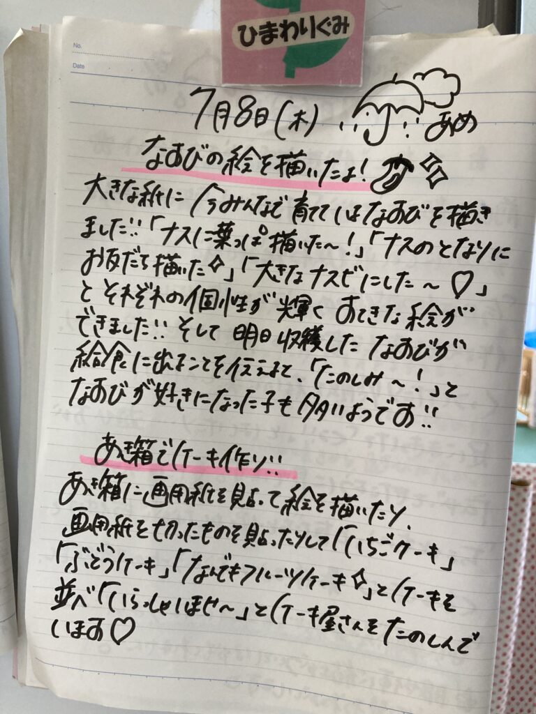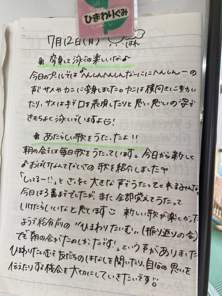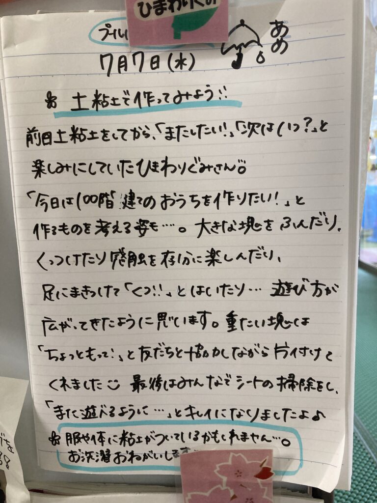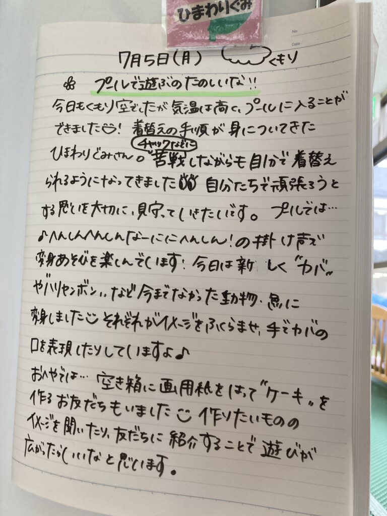 今日は午前中、雷雨でプール遊びは無しでした。今日は保護者面談で帰りは遅くなり、いつもの電車が見られず、荒れました。