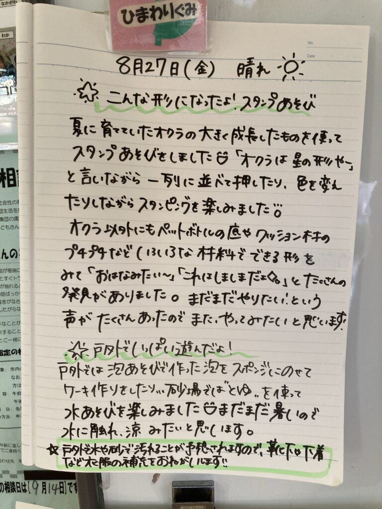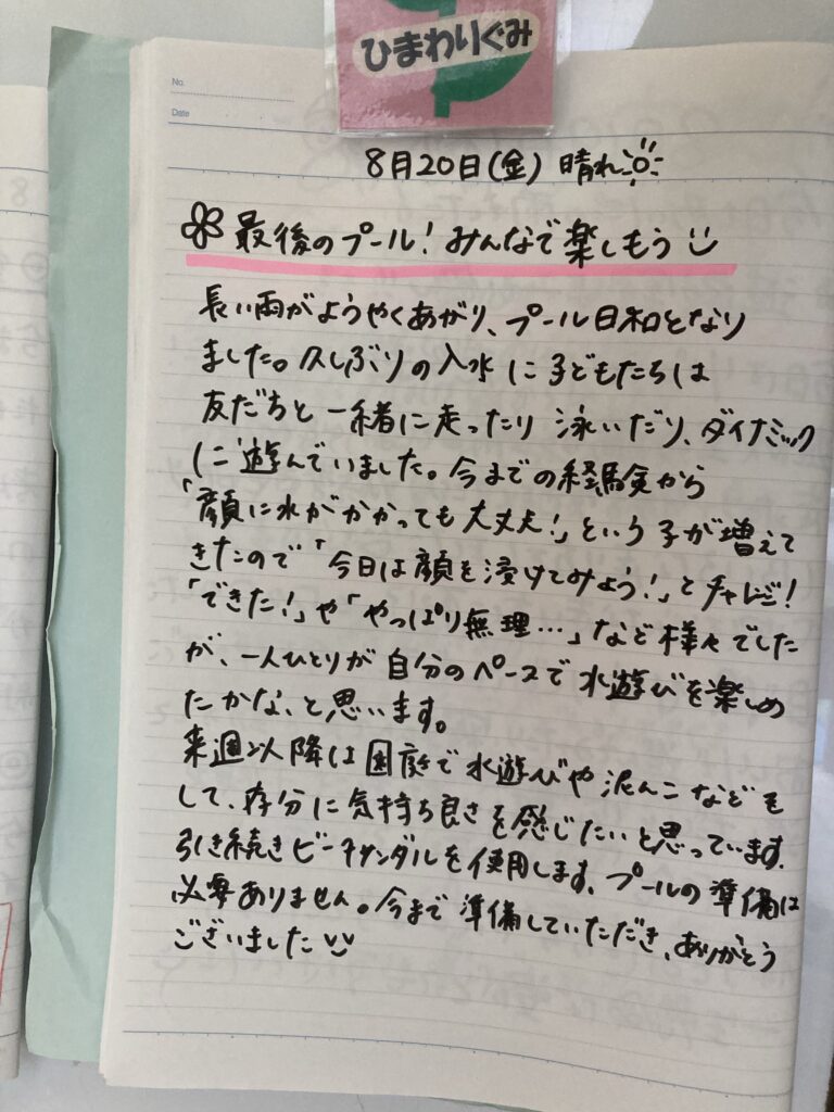 今年のプール遊びが本日で終わりました。来月も中頃まで暑い日が続くので、プール遊びは出来るのでしょうが、水道代とか、安全確保とか色々とあるのでしょうね!