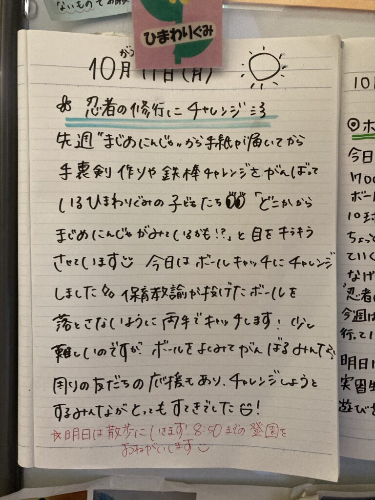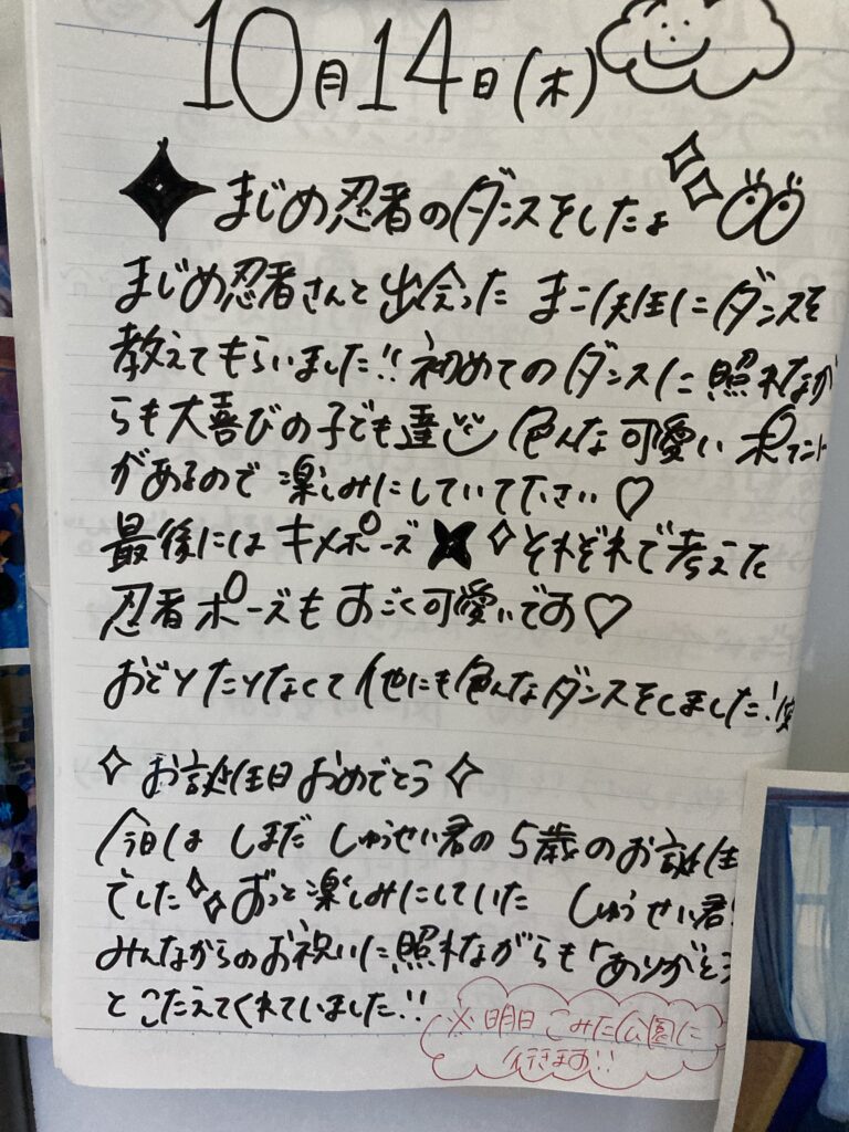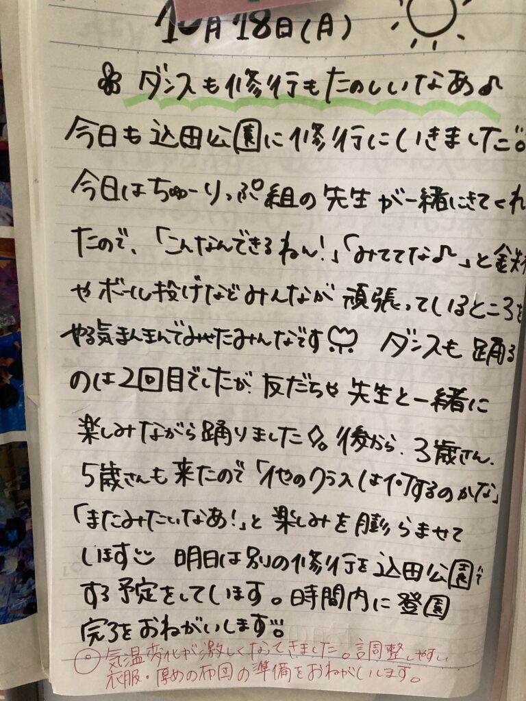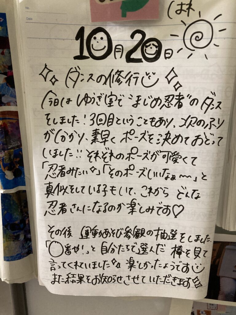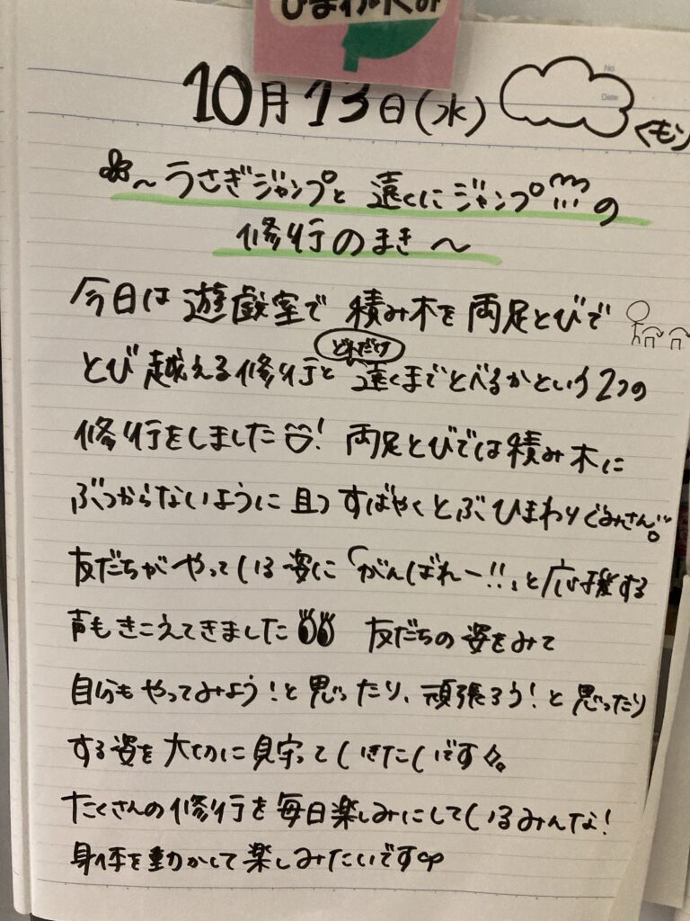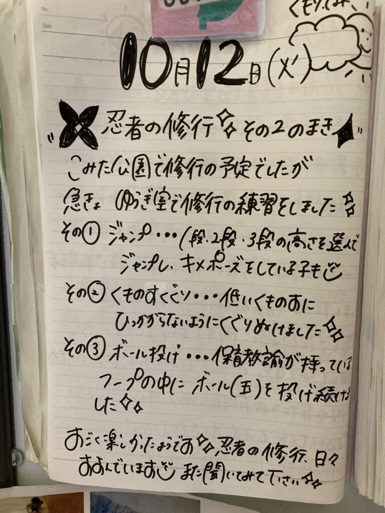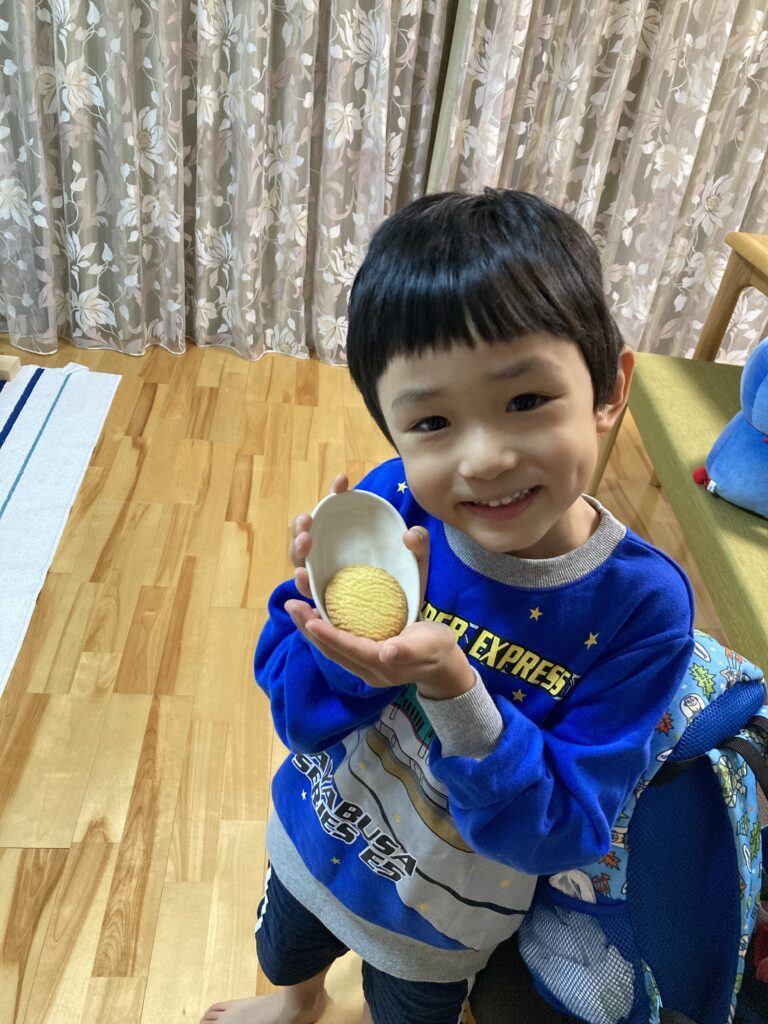 今日は朝から寒かったです。それでも元気に外で遊んだようです。聞いているとどうやら運動会の練習を近所の公園でしているようです!かけっこに力を入れて取り組んでいるようです、かず君は!