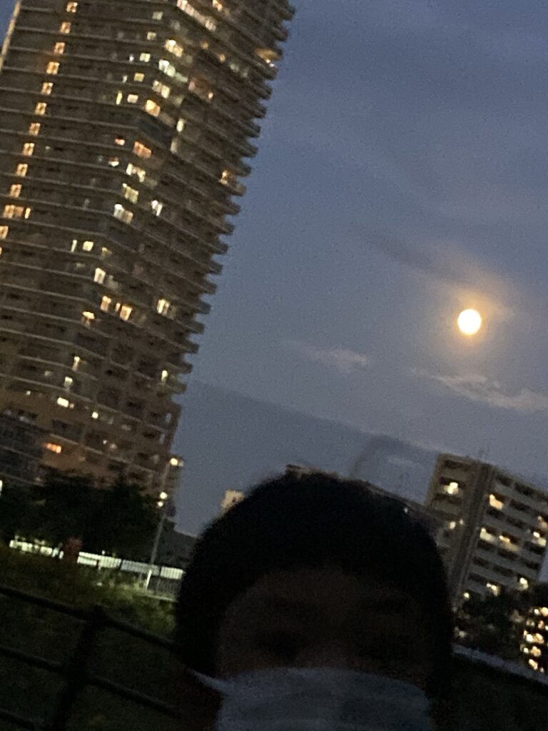 今日も寒い朝でした。帰宅中に日が暮れるようになったので、綺麗なお月様が出ていました。満月では無さそうです。