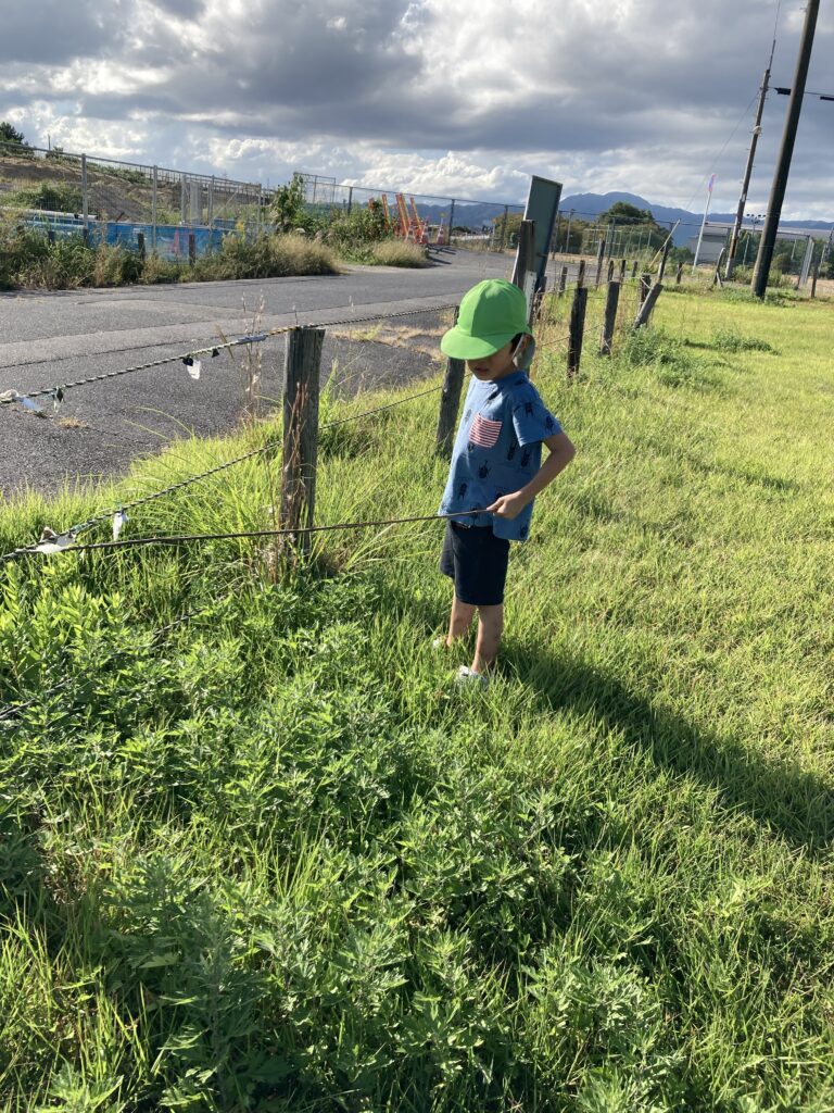 今日も近くの草むらへ行ってきました。昨日捕まえたトノサマバッタの餌を取りに行ったのですが、今日も捕まえたいと言い出し、昨日捕まえたバッタは逃してあげました。
