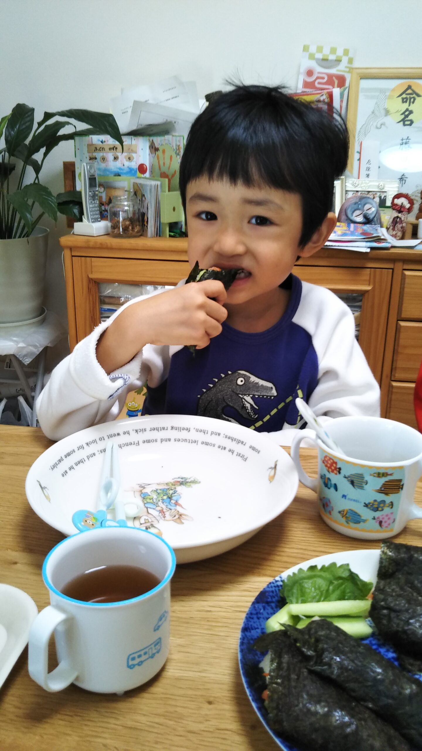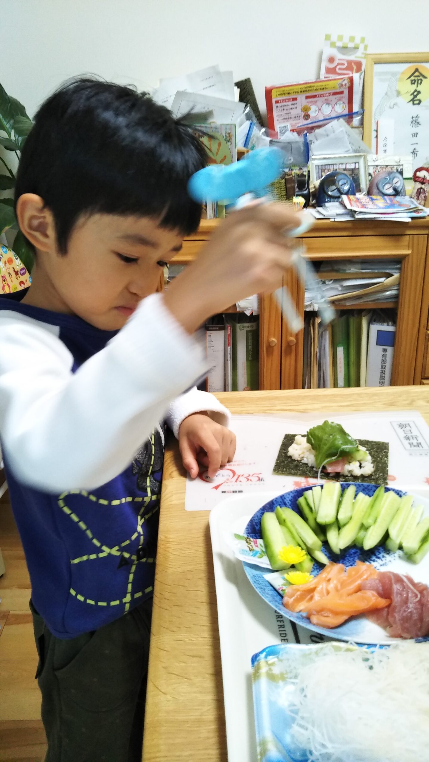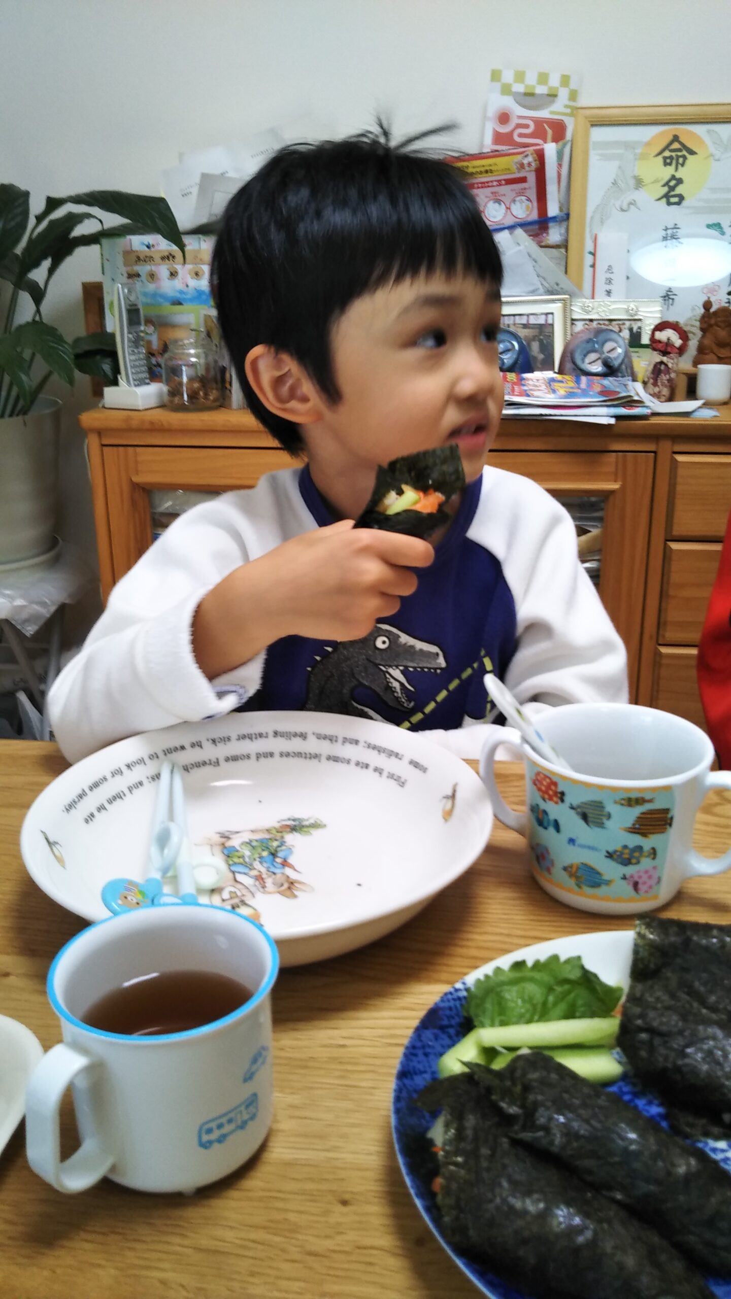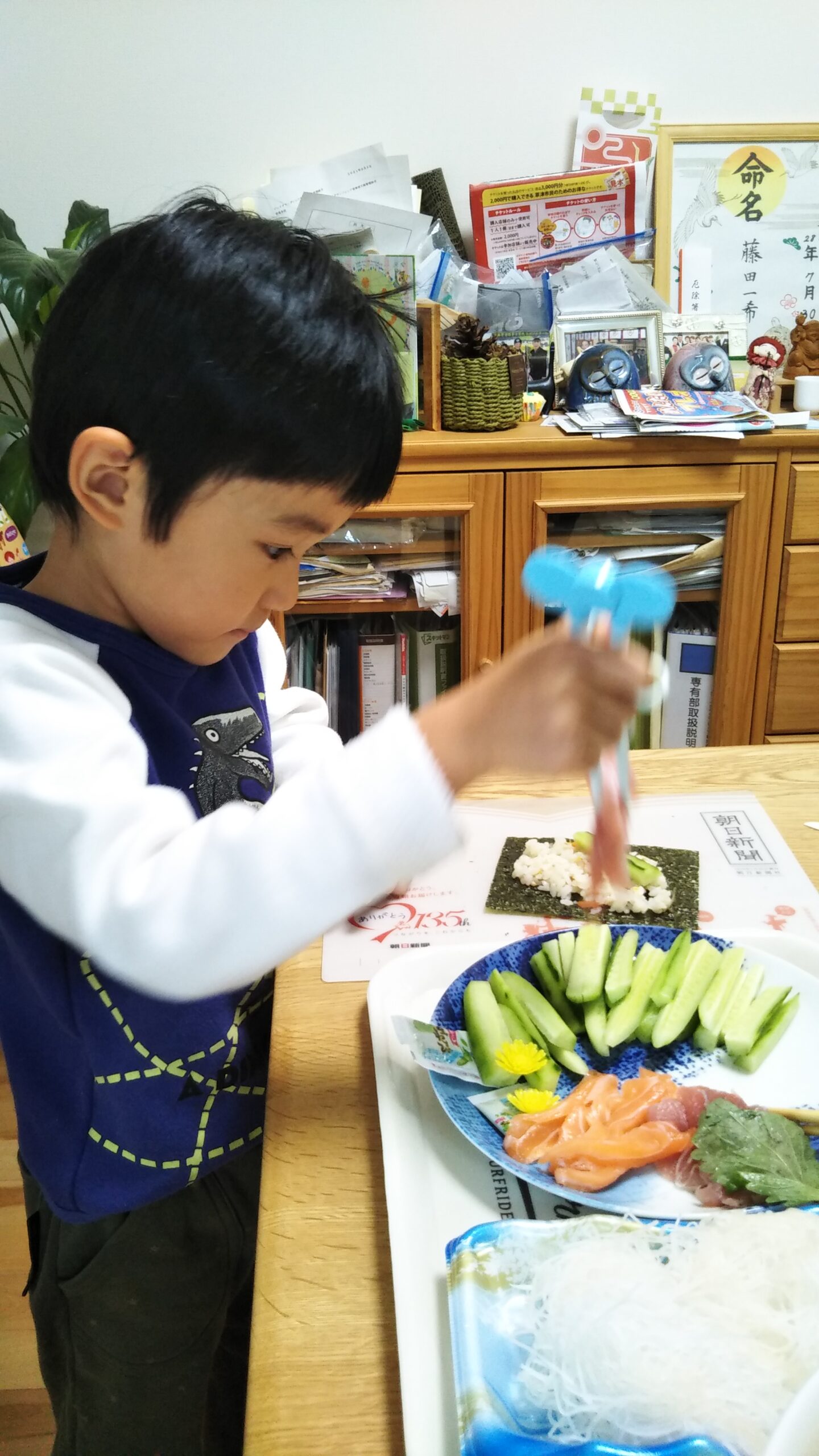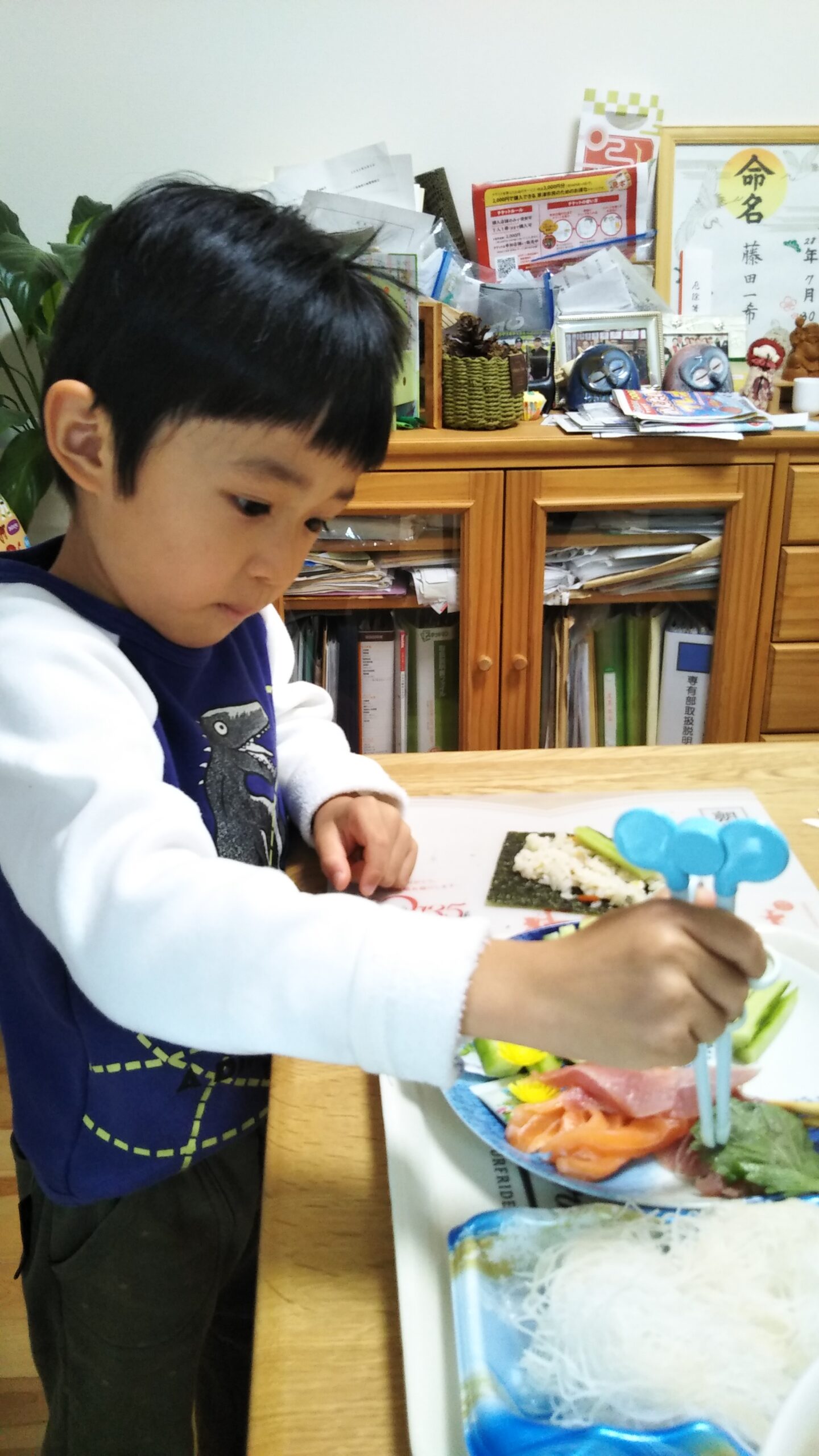 投稿日: 2021年11月3日2021年11月3日2021.11.3 祝日でゆったり🏘 今日はママのお誕生日翌日で、ゆったりおうちで満喫🏘朝からひらがなの練習をして、ついに難しかった[あ]が書けるようになったよ✌その後は、お昼ごはんに、手巻き寿司をして、6つ+ツナ巻4巻食べて、大満足💖