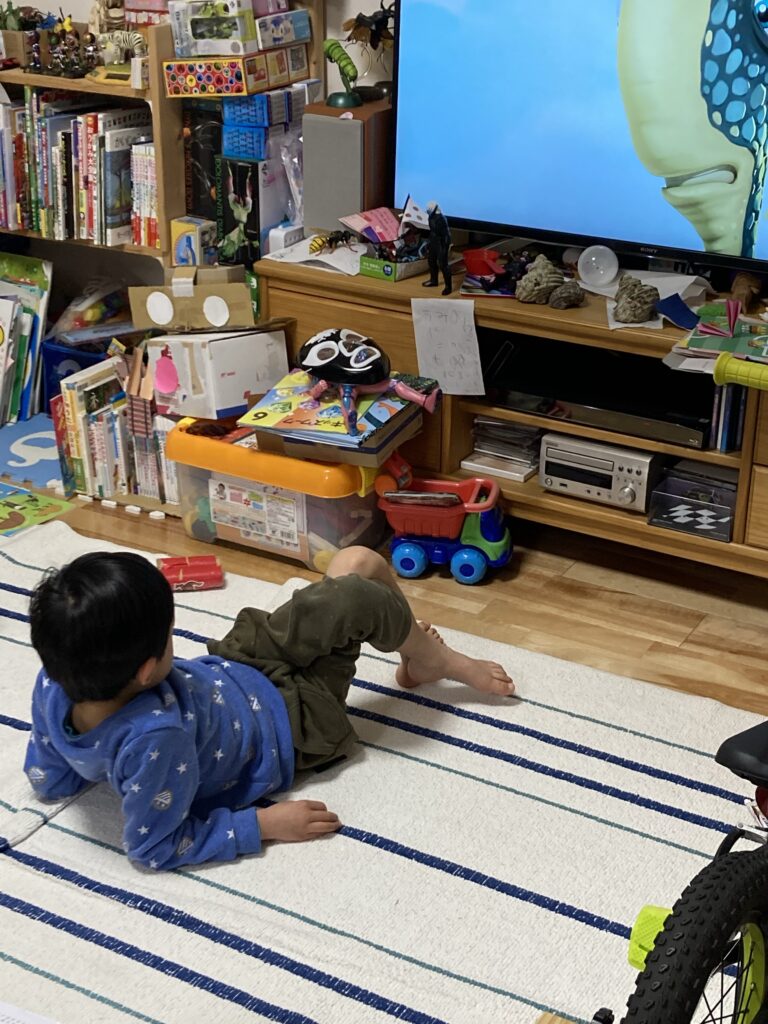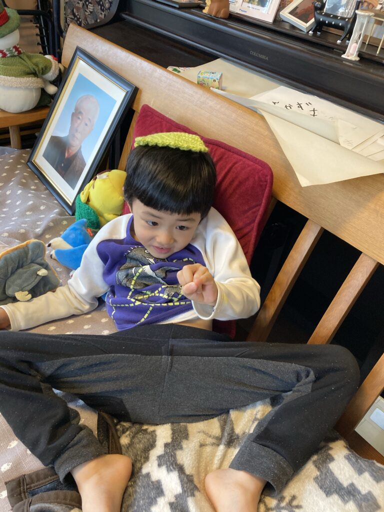 今日で別府生活が終わりです。今日は早起きして、朝から元気に遊んで過ごしました。テレビと絹さんのiPadを楽しんで過ごしました。パパが履いて帰る靴下も箱に入れて滋賀に送ってしまったので、お出かけの時に大騒ぎになりました。