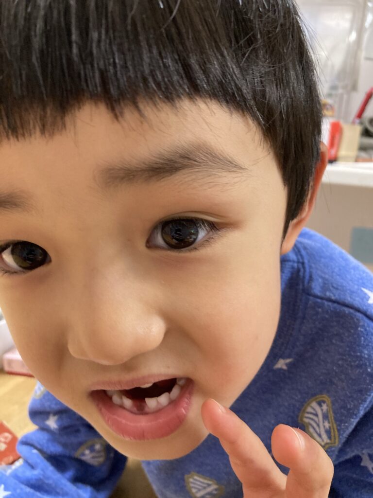 初めて歯が抜けました。今日の歯磨きの時にグラグラして、90°くらい横向きになっていたのですが…テレビを見ている時に床にコロンと抜け落ちました。