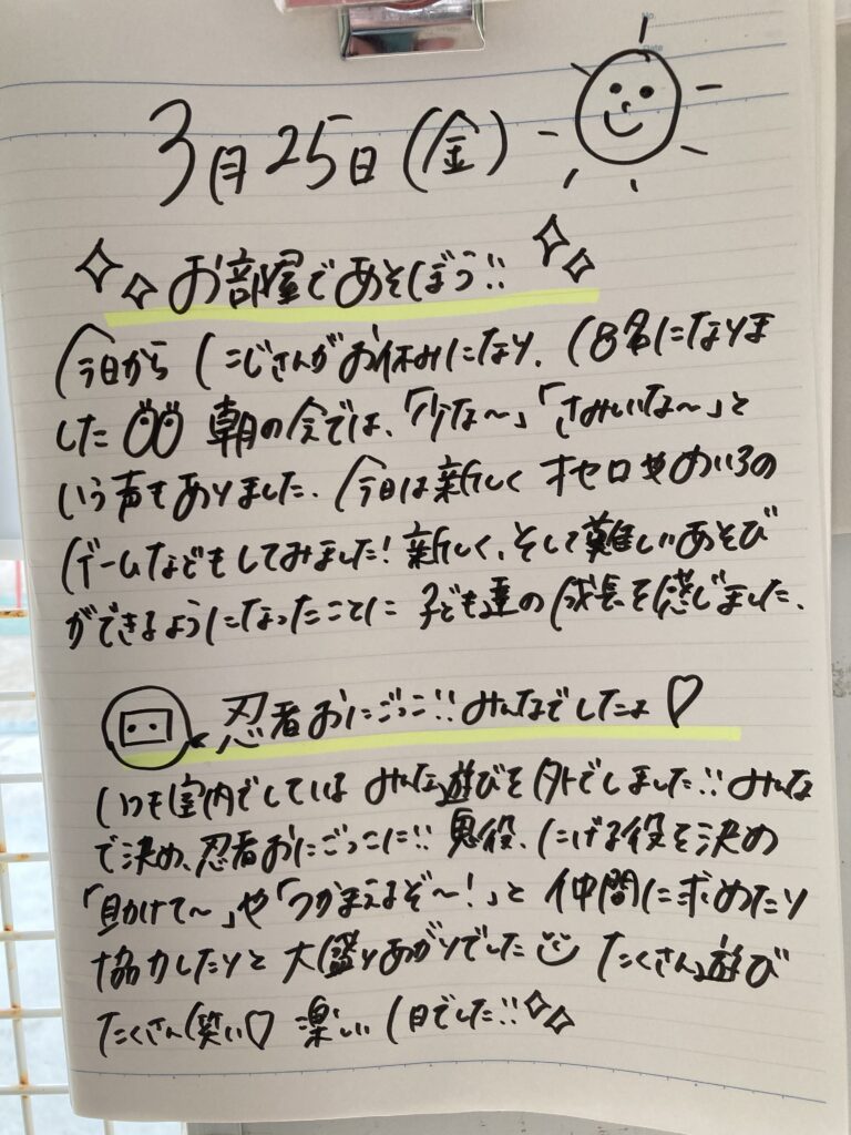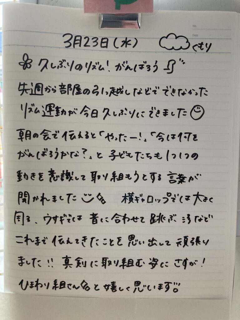 今日も朝からランニング&ジャンピングで元気に登園でした。帰宅時間も雨は降らずに助かりました。
