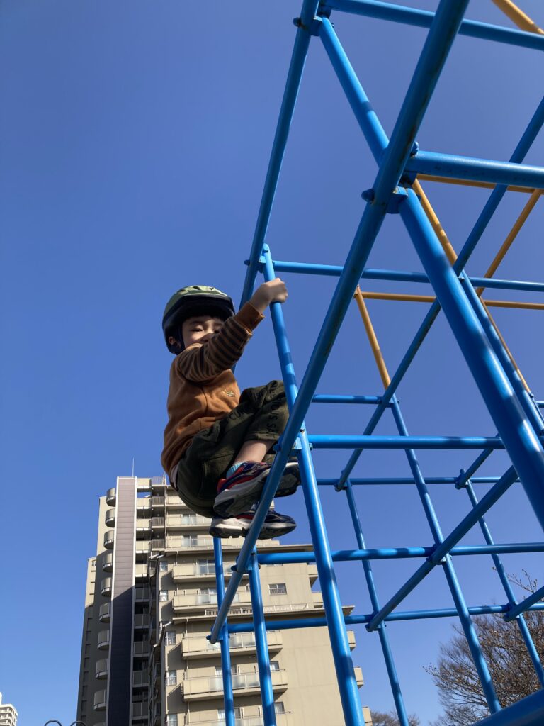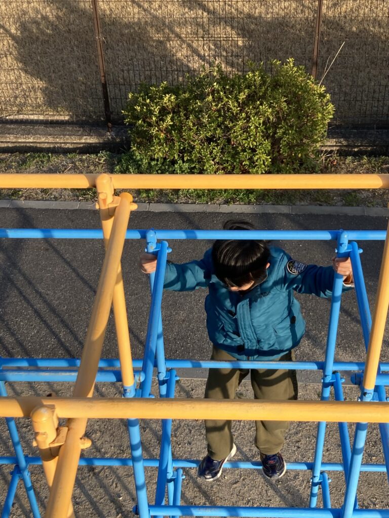 今日は一日中薄曇りで少し肌寒い日でした。朝は相変わらずラン&ジャンプで登園しました。帰りも隣のクラスの「はなちゃん」と途中まで一緒に帰宅しました。その後少し出会い広場で遊んで帰宅しました。