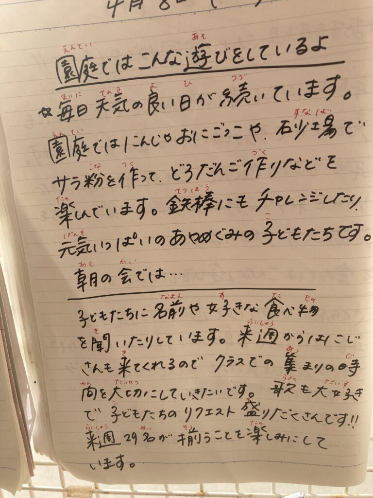 今日から新年度+じいじの誕生日です。登園した子どもが少なかったので、辛い一日だったと思います。しかし、頑張って乗り切ってくれました。