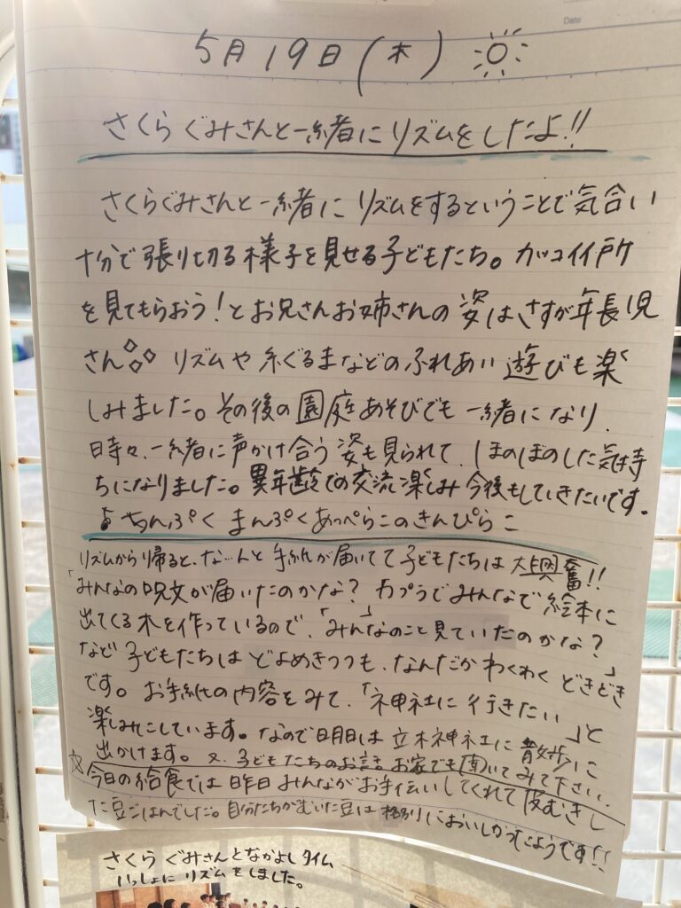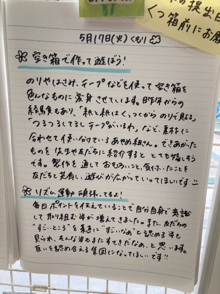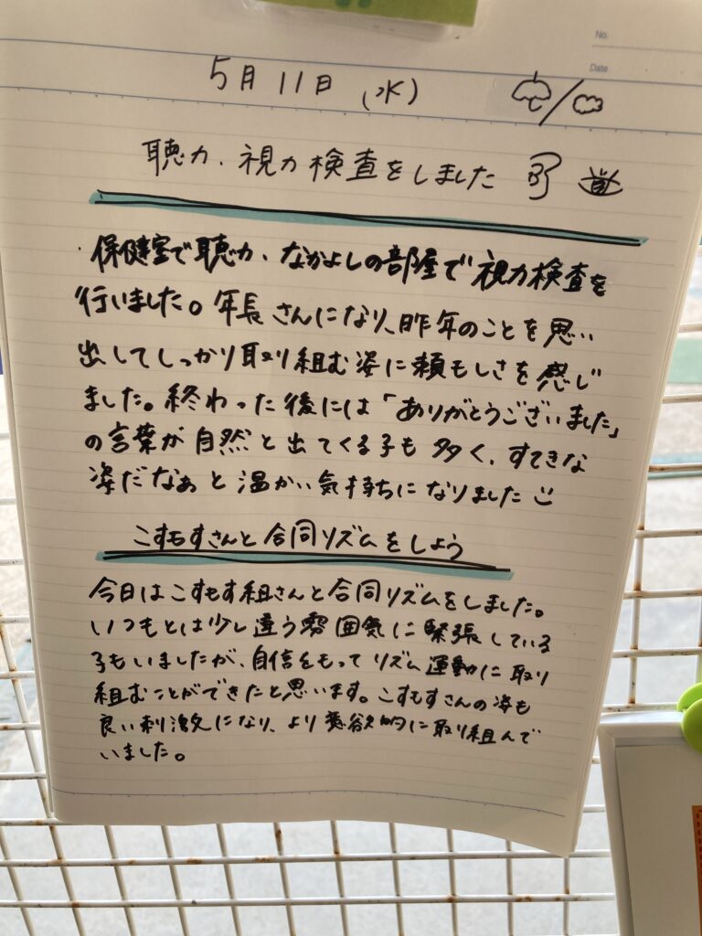 今日も鼻水が出ていますが、元気に登園しました。