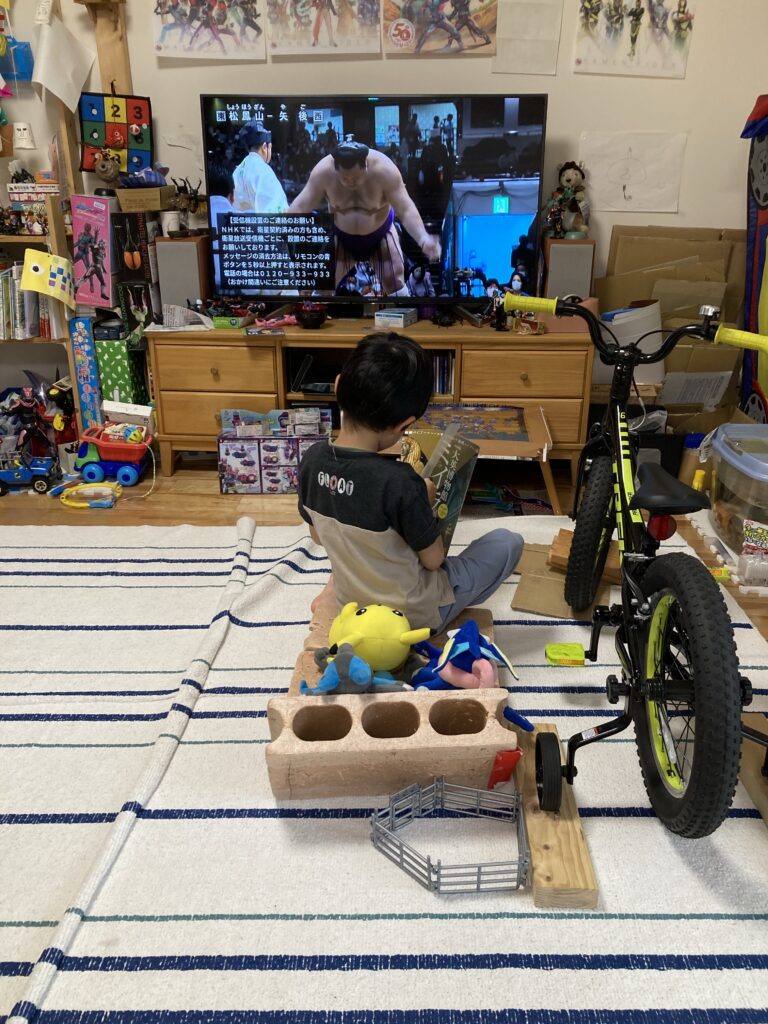 今日は昼前から雨でしたが、元気に登園しました。帰宅したら日課の大相撲の結果を確認…正代とおはぎさんは負けでしたね。北勝富士さんも負けてた残念な一日となりました!