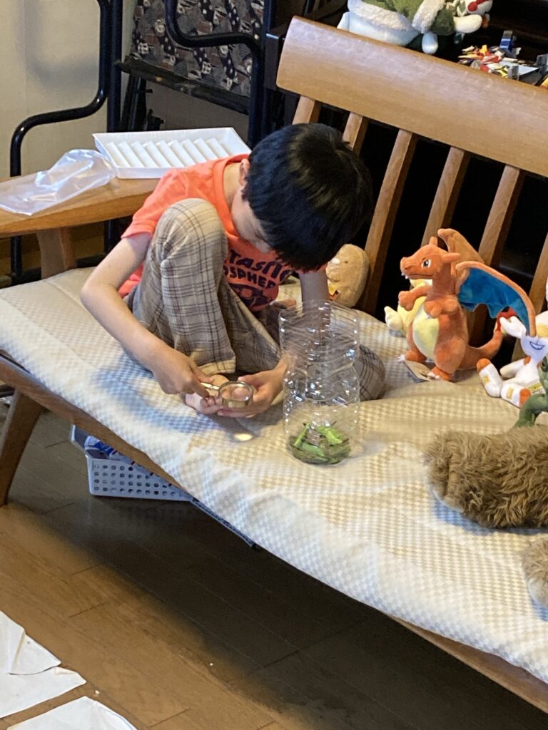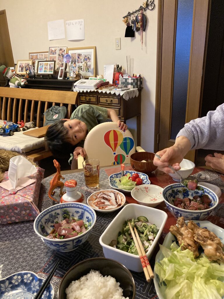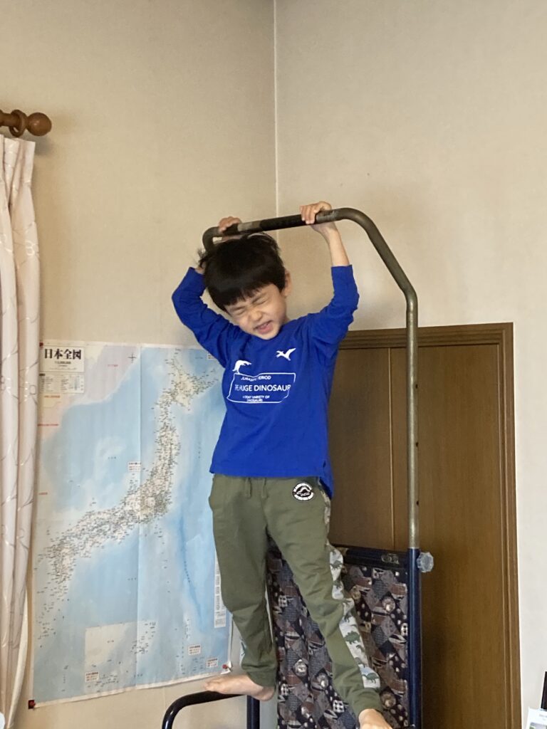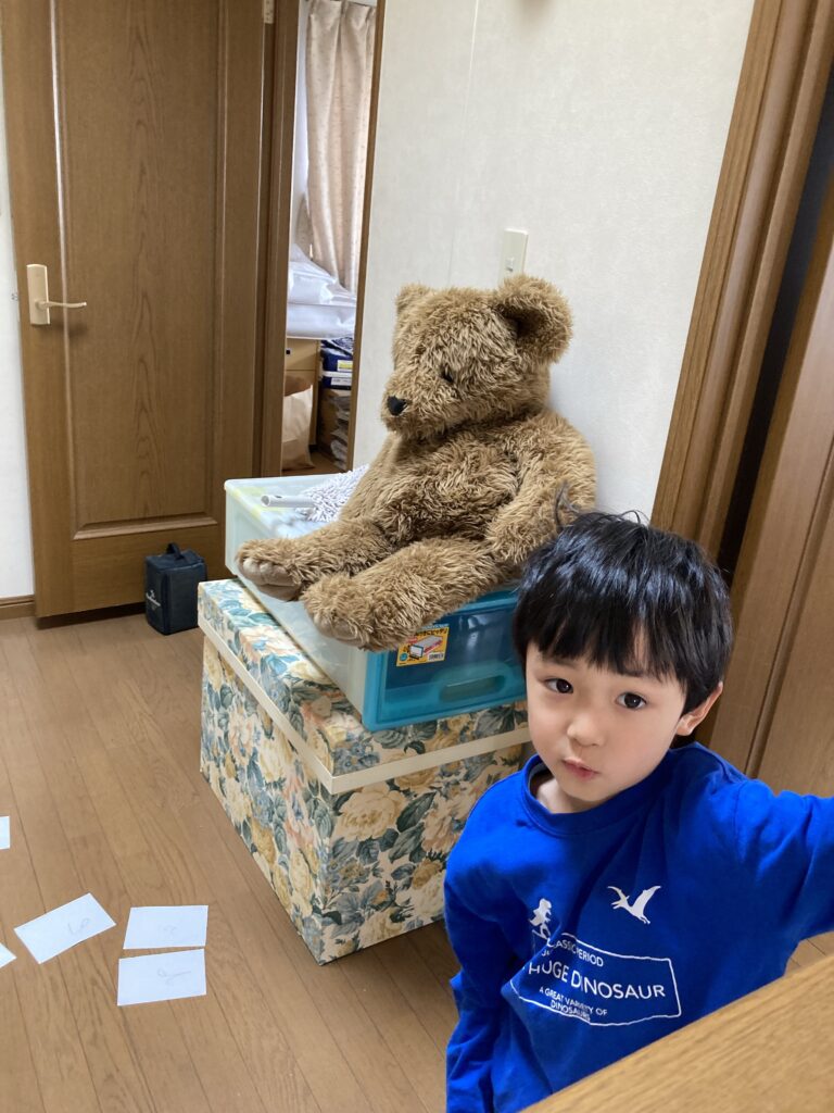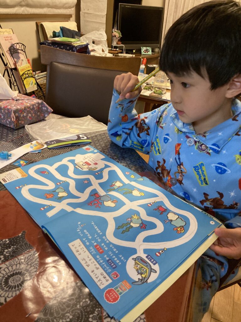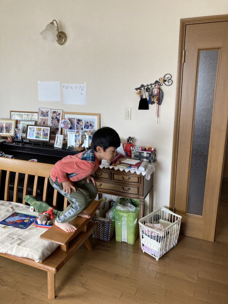 昨夜は寝る前にこどもチャレンジをしていたので、少し遅く起きてきました。寝起きはご機嫌で、朝から元気に遊びました。
