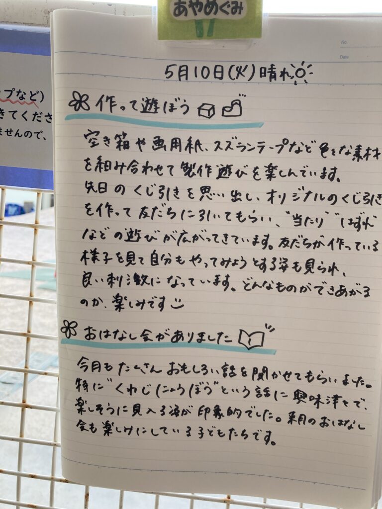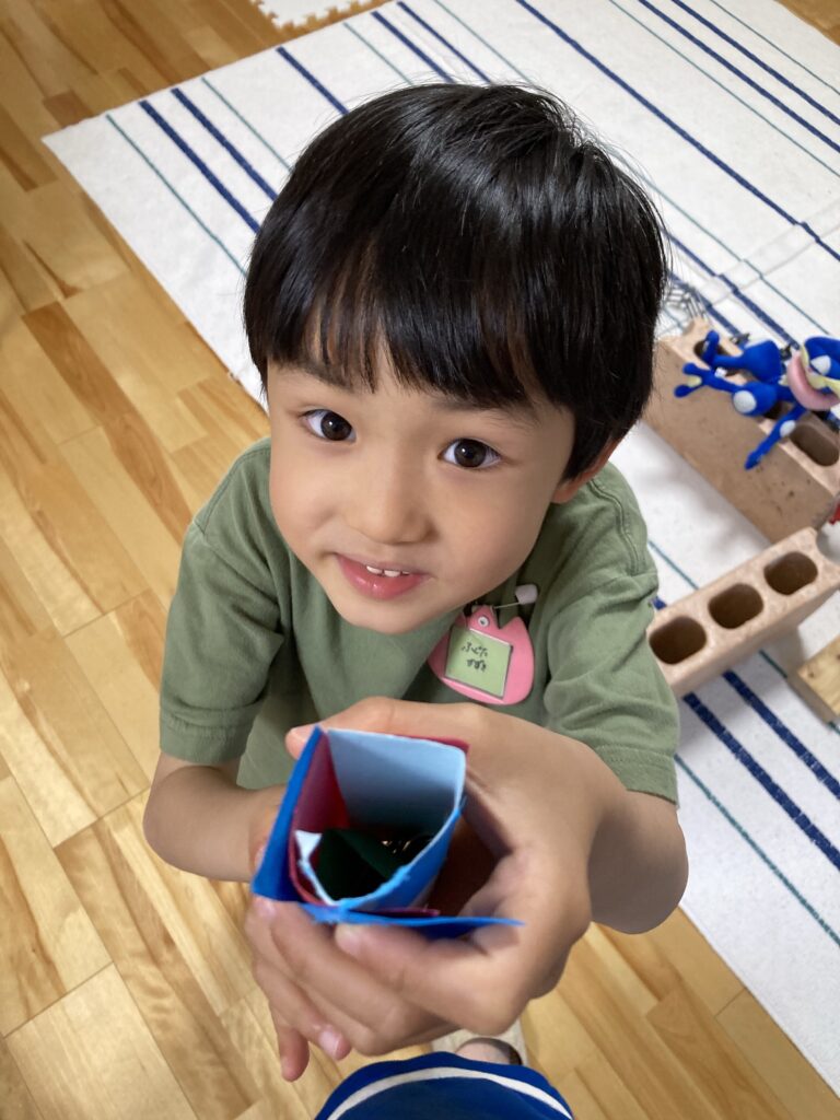 今日は長期休暇明けでしたが、通常通り登園しました。屋上で遊んだらしく、楽しかったようです。