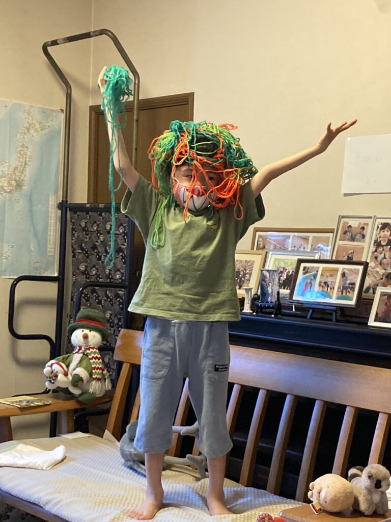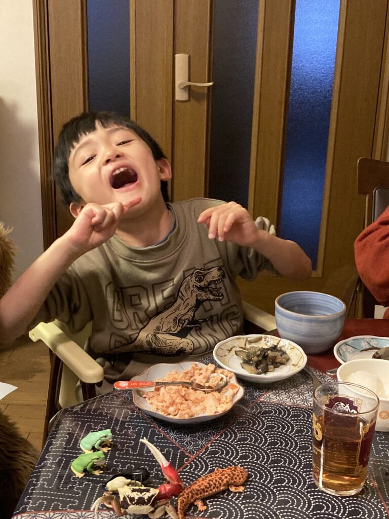 午後は買い物に行って、帰宅してからは家で過ごしました。仮面ライダーのごっこ遊びを延々としてました。