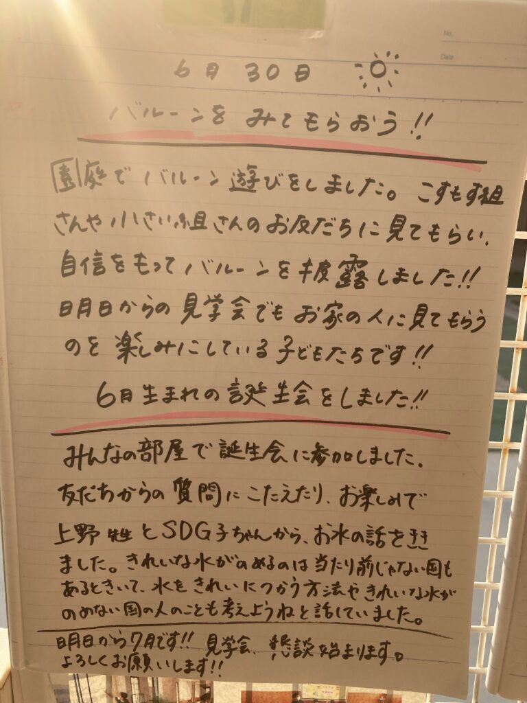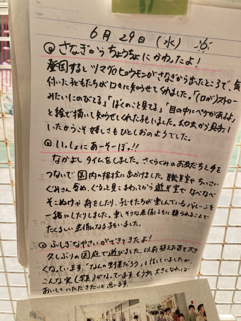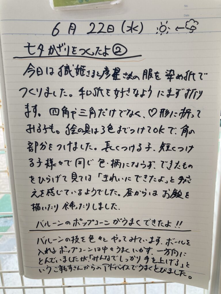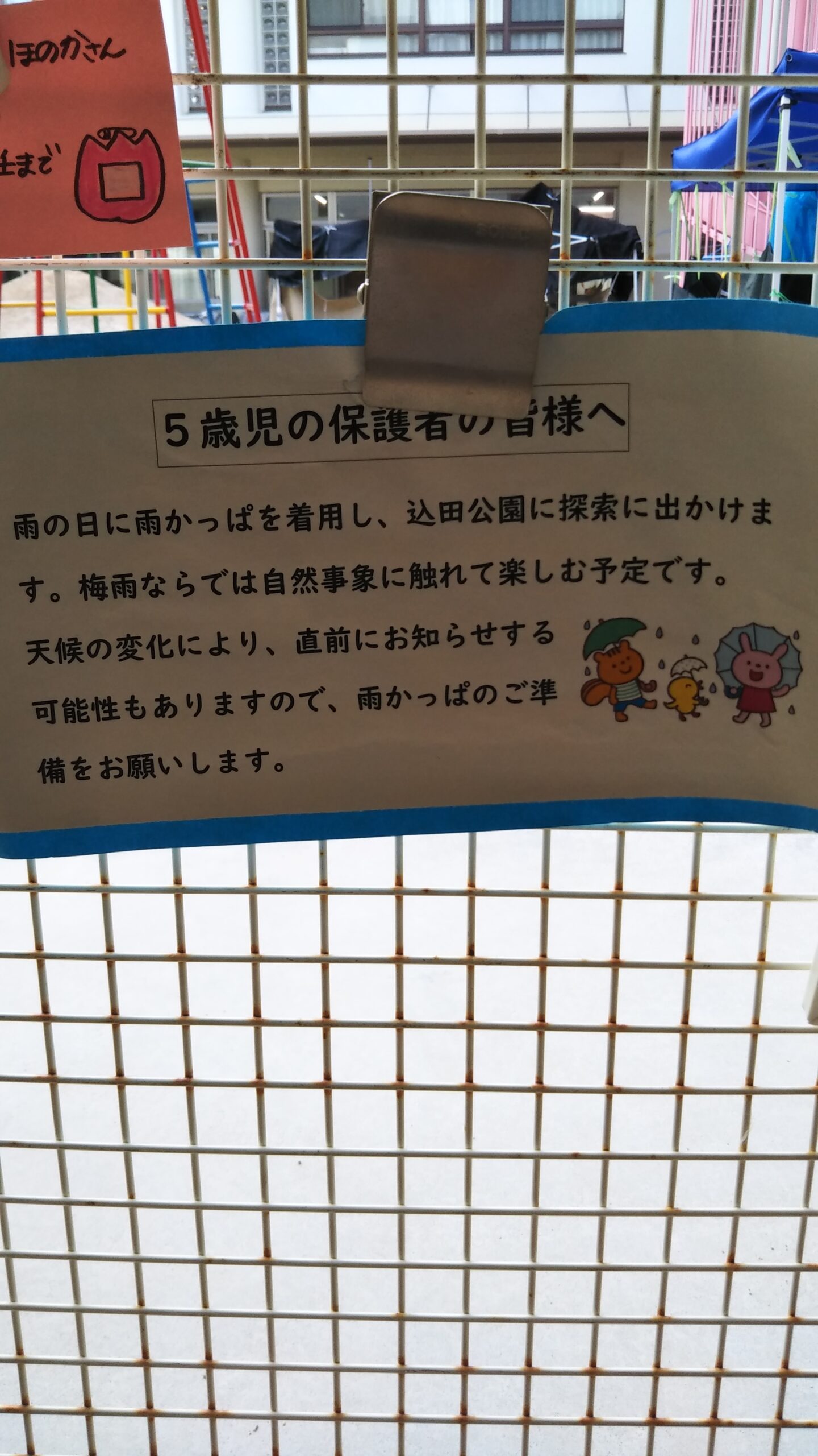 今日も朝から真夏のような暑さでした。今日は節水日ということでプールは無かったようです。外出もせずに園内で過ごしたようです。