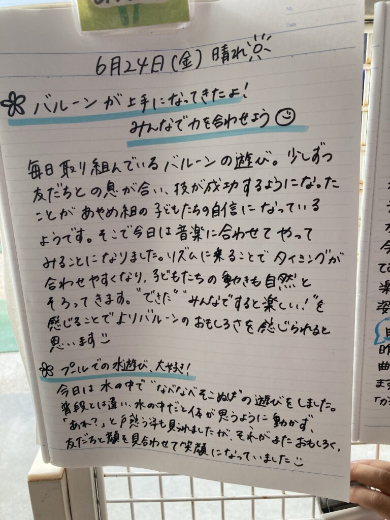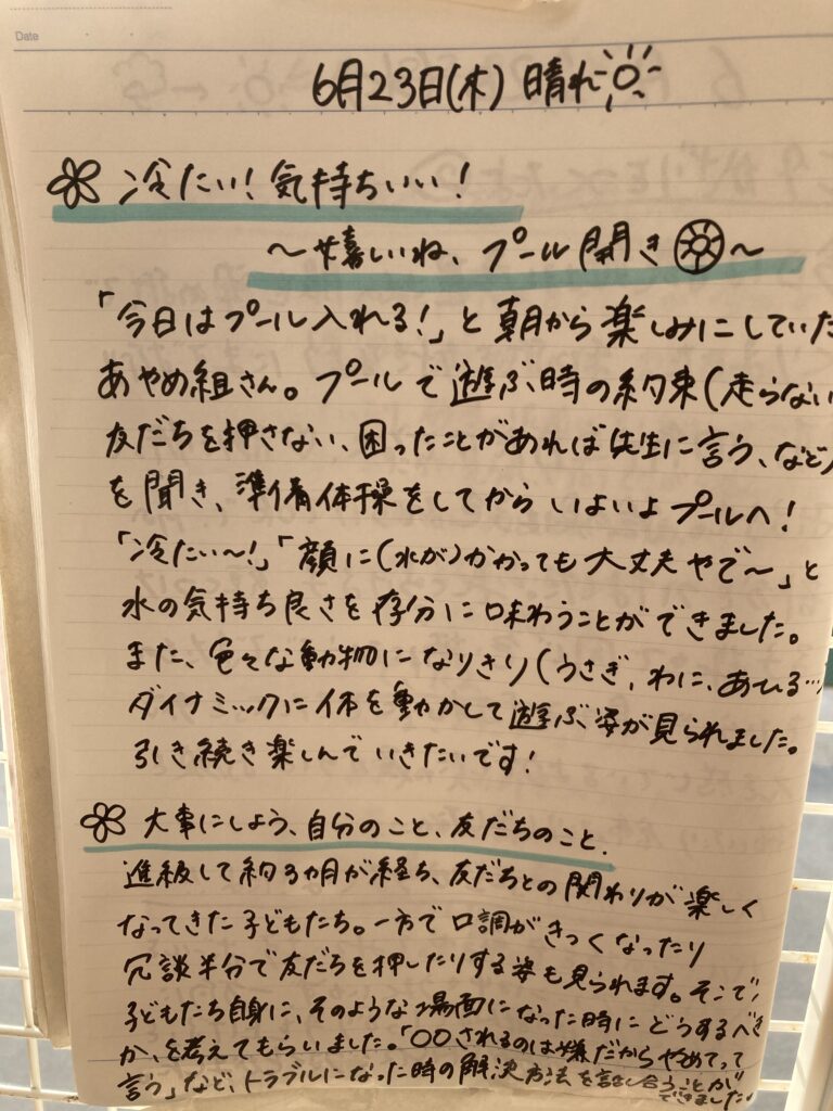 今日も朝から夏のような暑い一日でした。毎日プールで疲れていますが、元気に過ごせているので、安心しています。