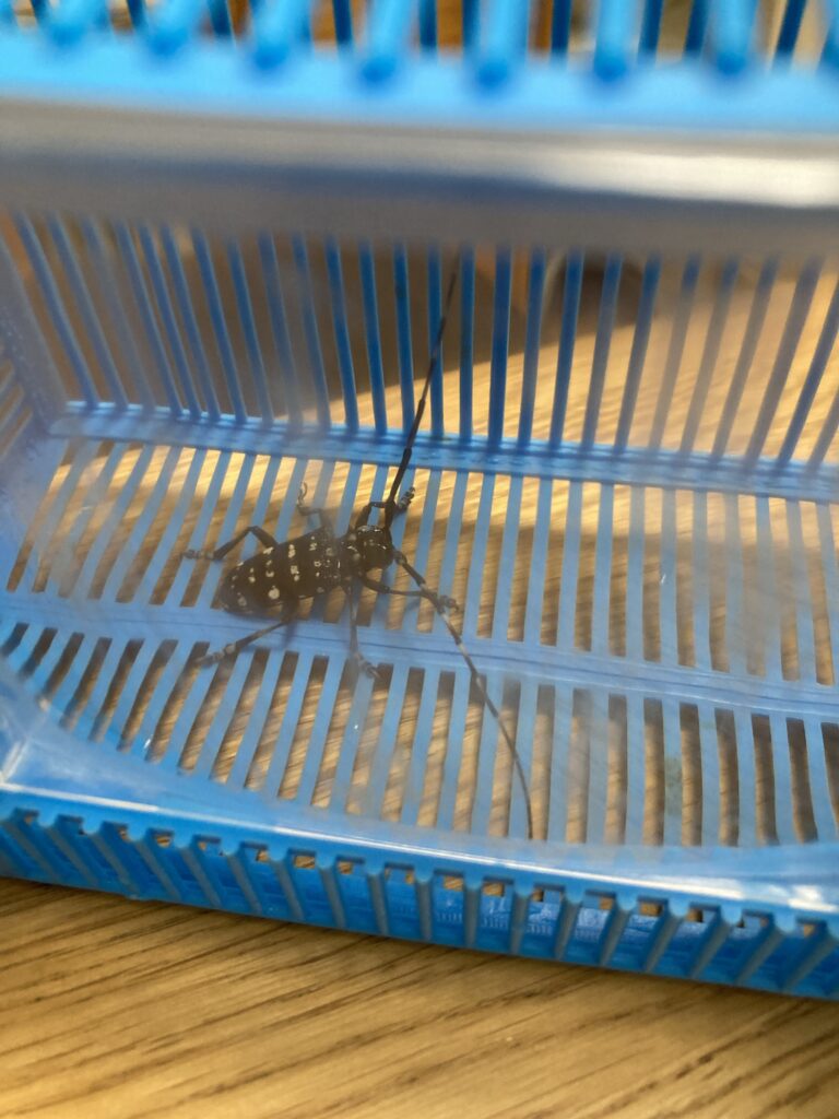 今日は昼前から雨が降り出したので、プールは無しでした。今日は帰宅したら、エレベーター前にゴマダラカミキリがいました。明日まで家にホームステイするようです。さらに先週持って帰ったツマグロヒョウモンが無事に羽化していました!