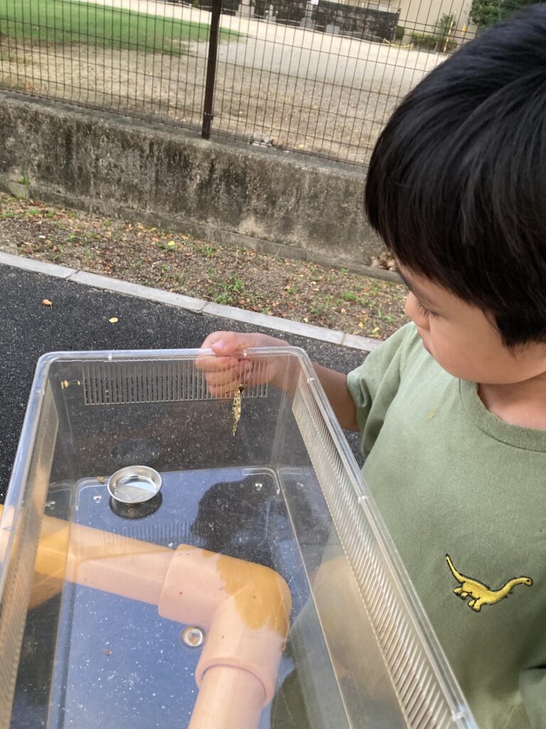 昨日捕まえたゴマダラカミキリを朝逃してから登園しました。帰りは雨に降られず助かりました。ツマグロヒョウモンは逃すのが嫌なのか、別れたくないと泣かれました。さて、どうしようかな?