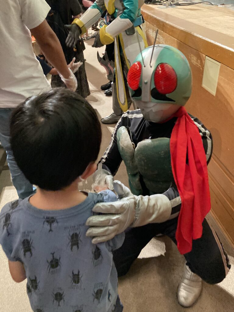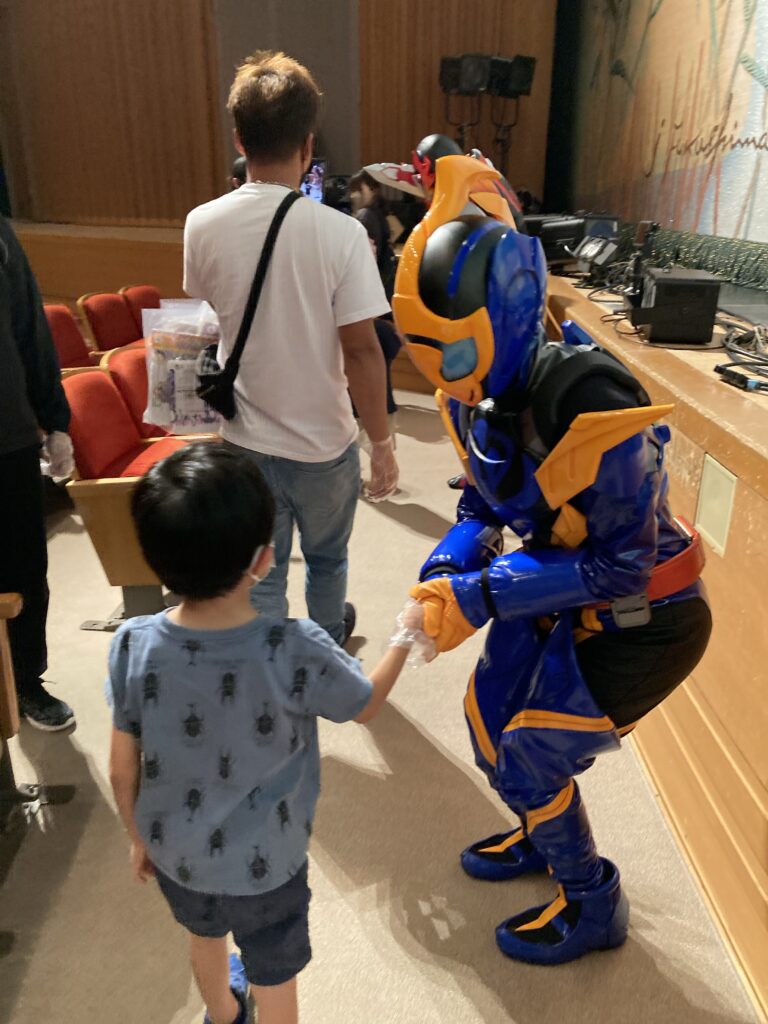 今日は朝から守山市で開催された仮面ライダースーパーライブ2022に行ってきました。暗いし大きな音が出るので、怖がるかな?と思っていましたが、楽しんでいたようです。途中のMCはショッカー戦闘員だったのが特に楽しかったようです!写真撮影はNGだったので、画像が無いですが。