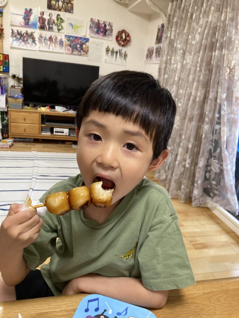 今日はおやつにみたらし団子をチョイス!家族皆んなでお楽しみでした!