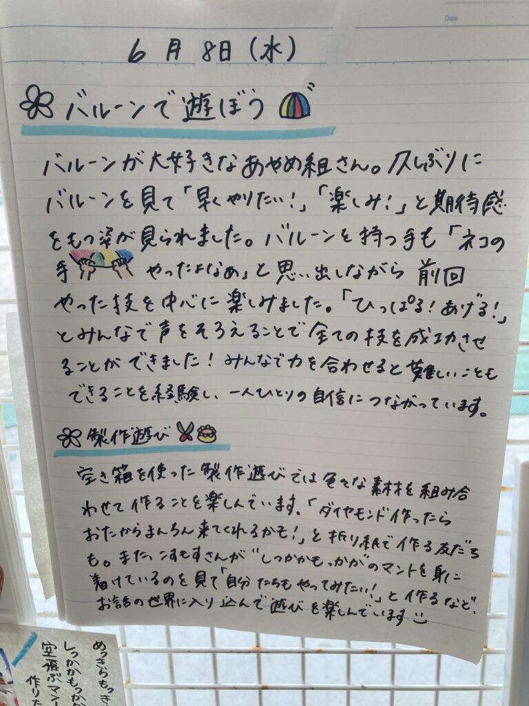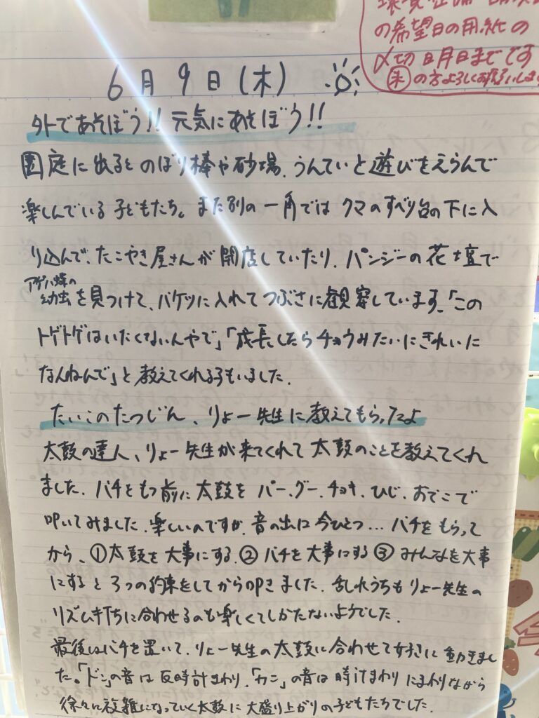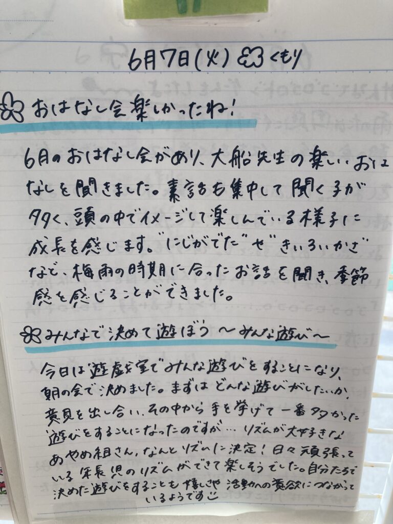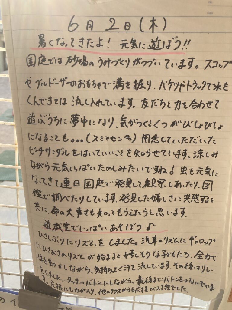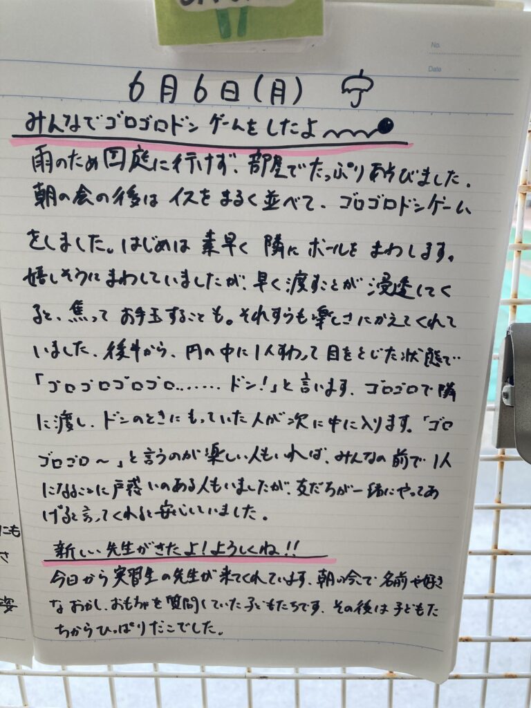 今日も元気に走って登園しました。帰りはお迎えが遅かったせいか、グズグズされました。