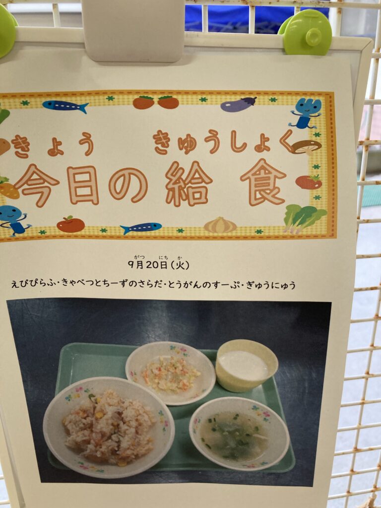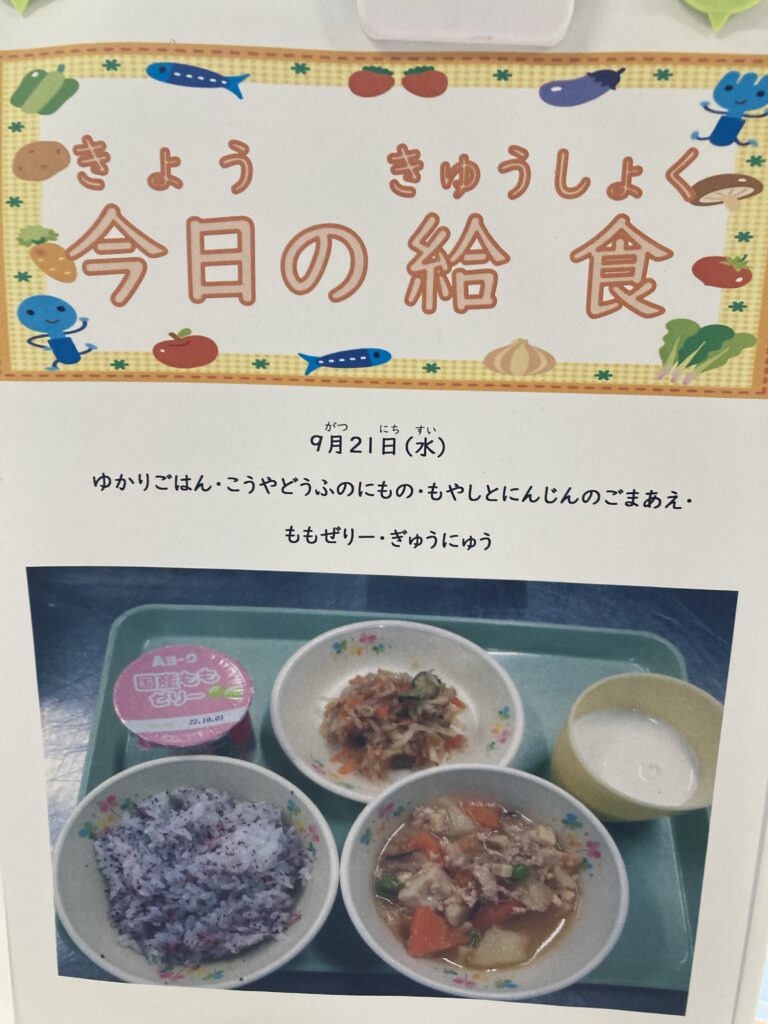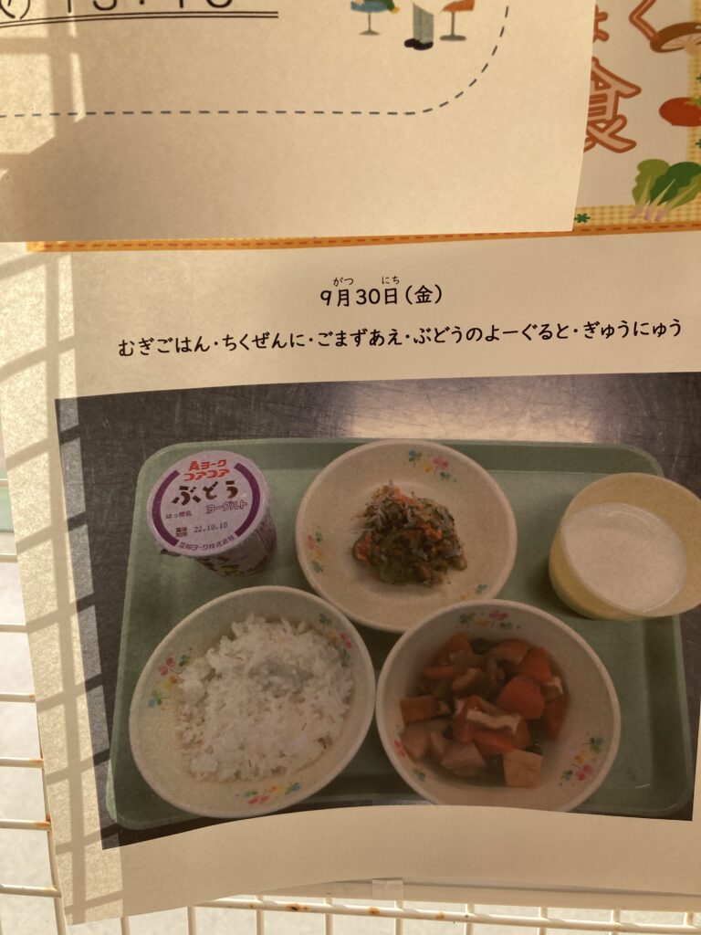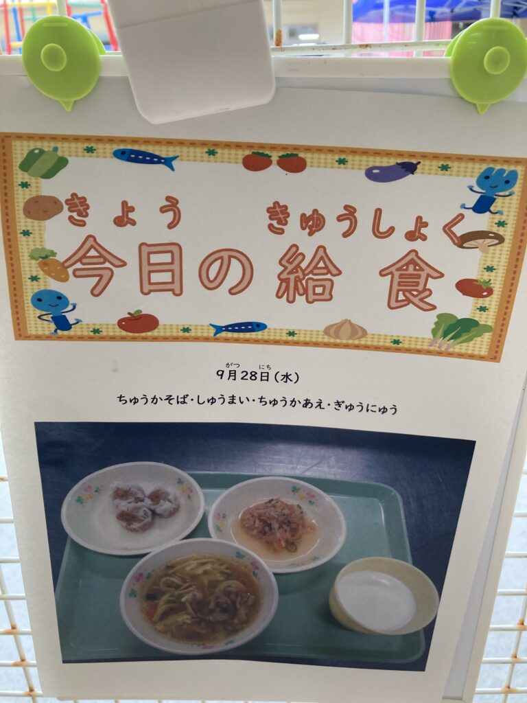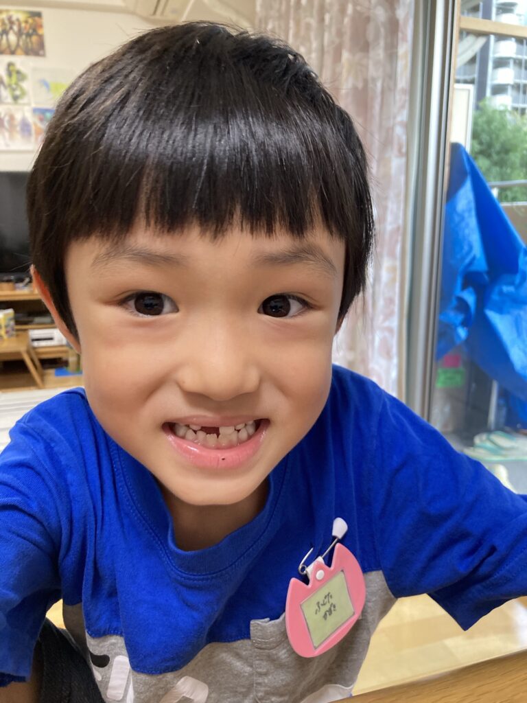 今日も雨に降られずに元気に登園しました。昼食は中華麺だったらしく、抜けかけていた前歯と一緒に飲み込んでしまったようです…