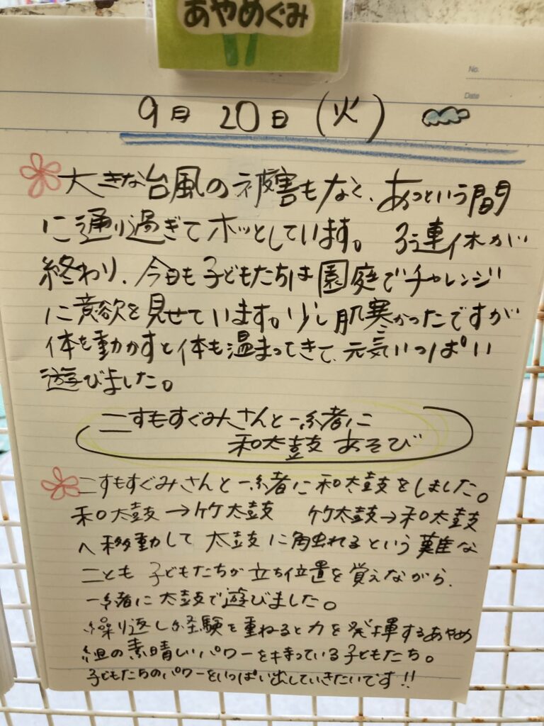 休み明けですが、元気に登園しました。