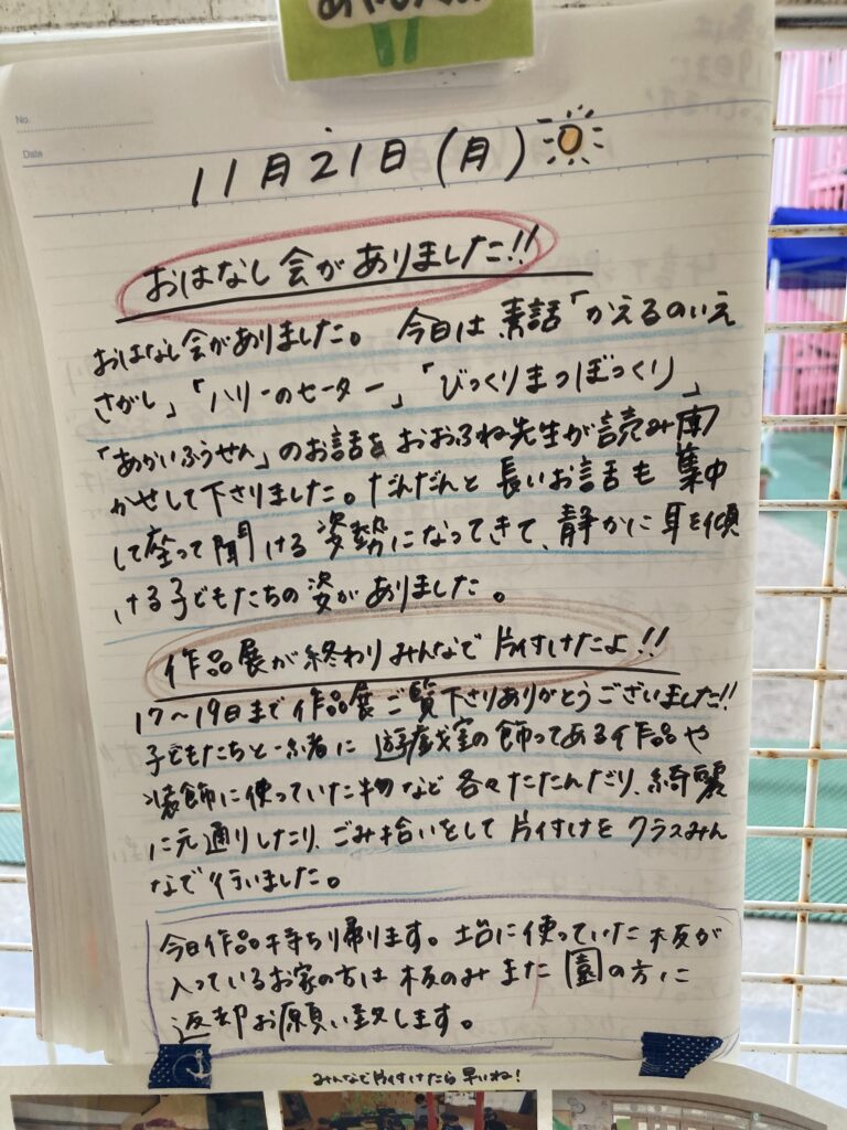 昨夜からウキウキソワソワしていました。朝も早めに目を覚まして、元気に登園しました。
