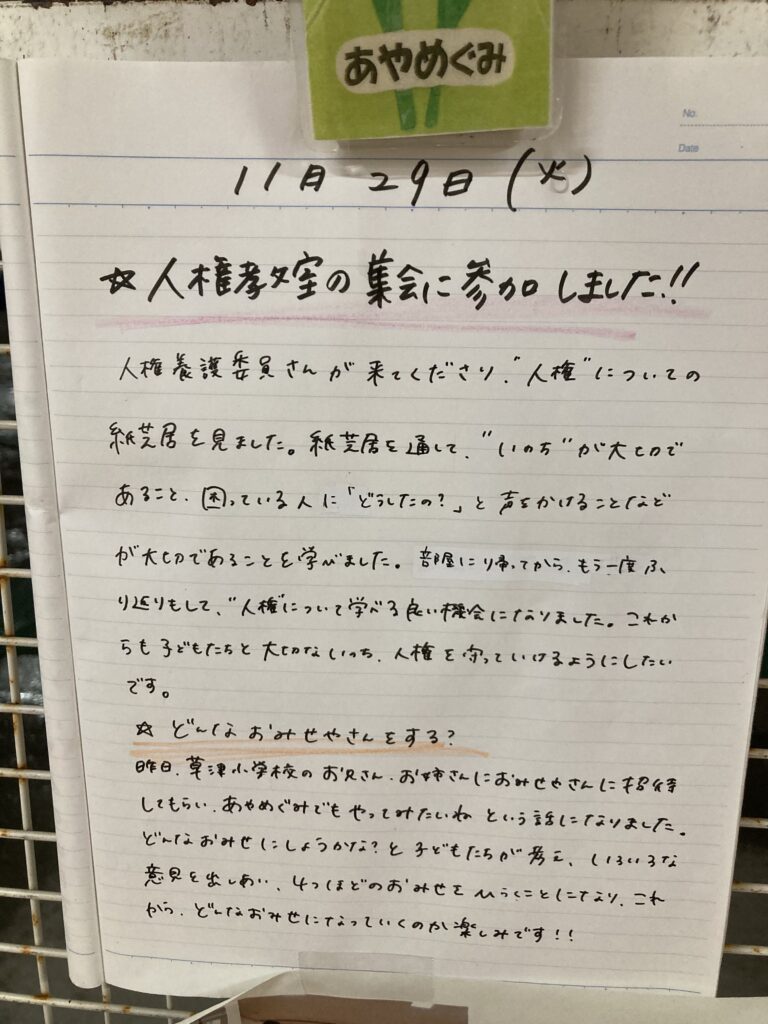今日は昼前から雨が降ってきました。帰りは肩車でしたが、途中でマスクを落としたらしく…雨の中子ども園まで戻って探してきました。