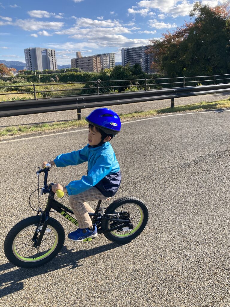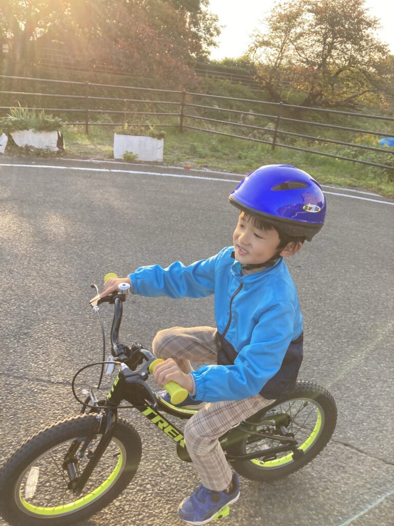 今日も午後から自転車に乗ってきました。今日から少しだけサドルを上げてトライ!先週よりも曲がるのが上手になってきました。来週はいよいよキチンと止まる練習かな?