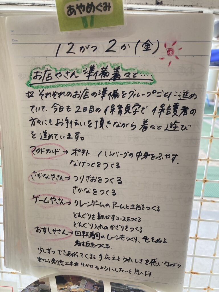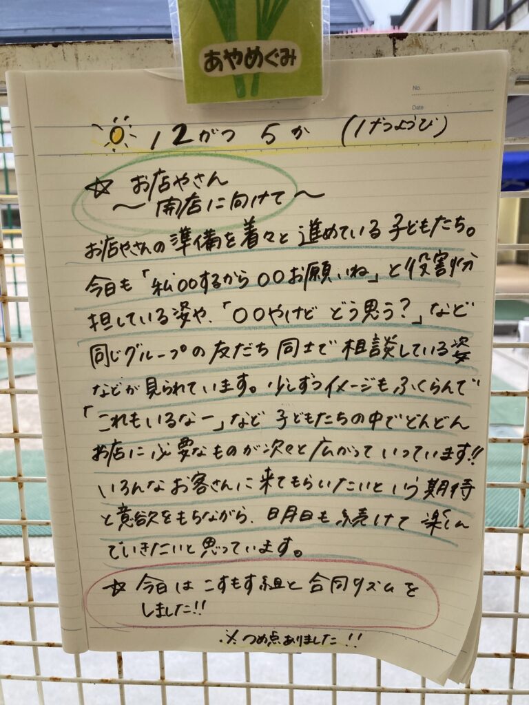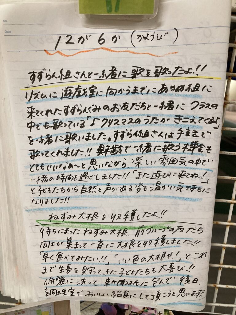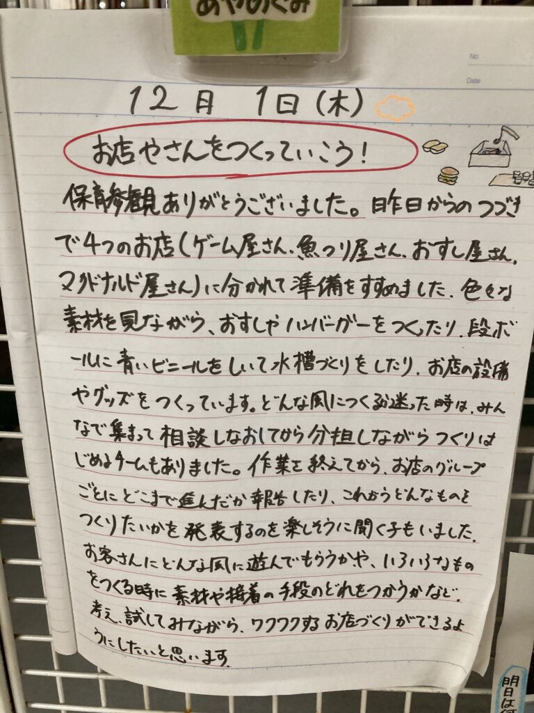 今日も寒い一日でした。お迎えに行った時にサンタさんにお手紙を書いていました。園に備え付けられたポストに入れて帰りました。