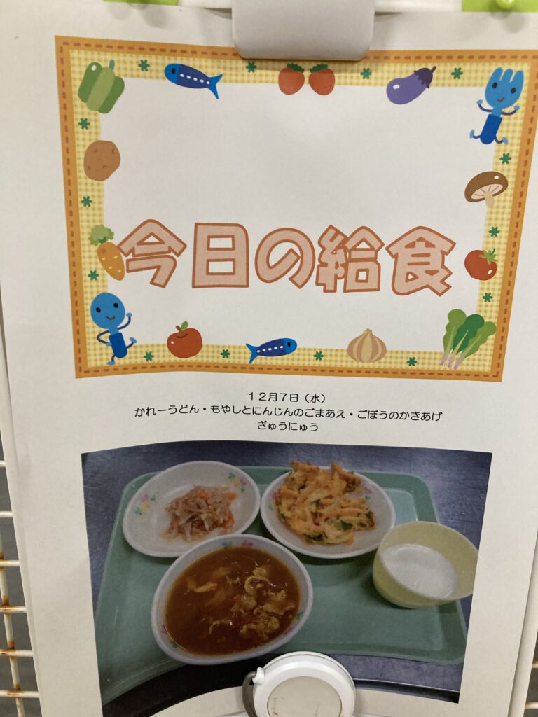 今日も朝から寒い一日でしたが、元気に登園しました。今日は数日前から楽しみにしていたカレーうどんの日!美味しく頂いたそうです。