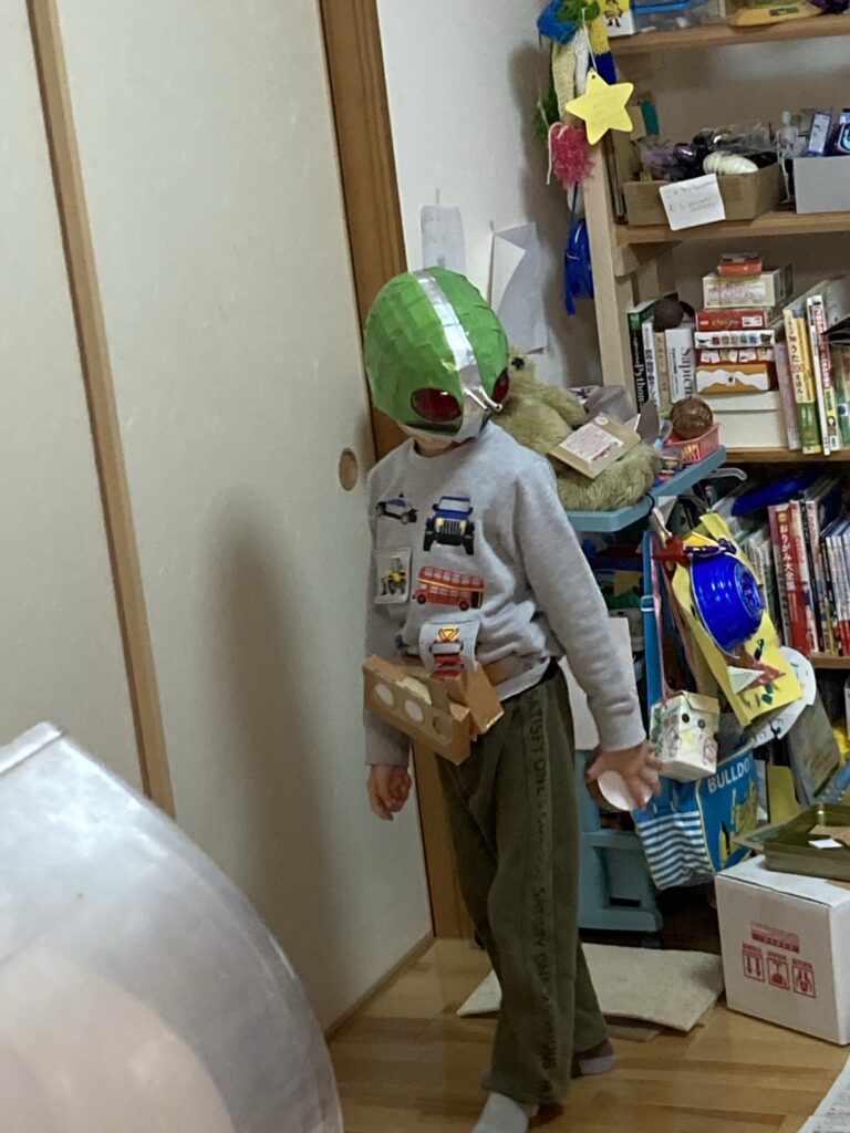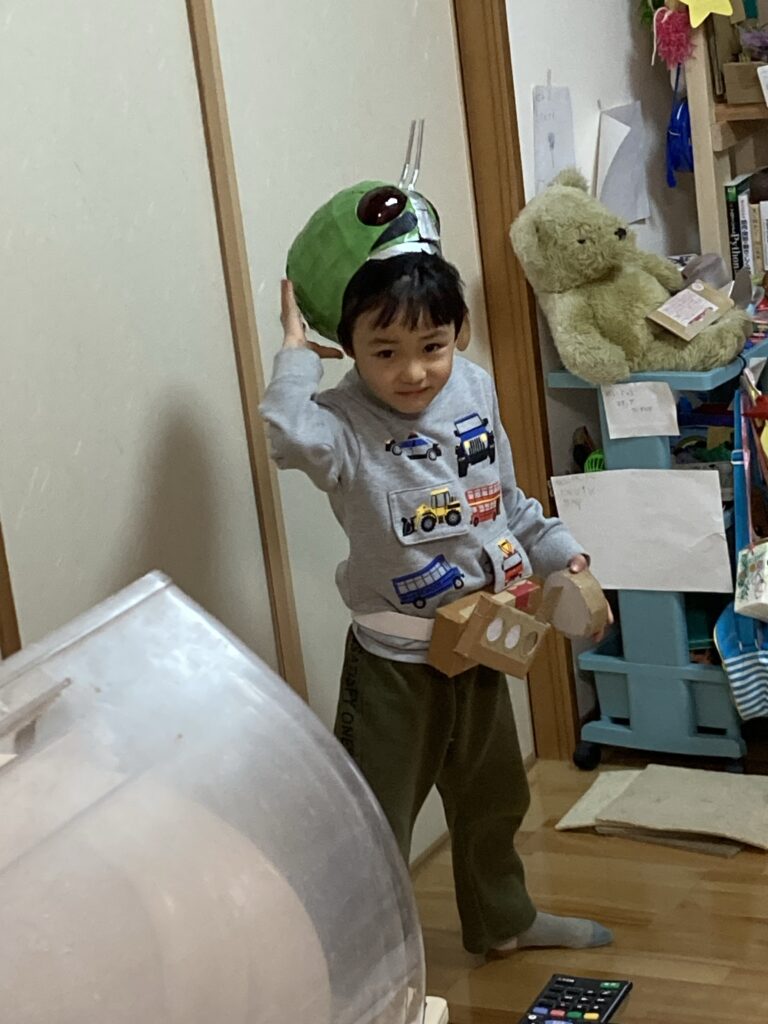 午前中はひらがなとカタカナの練習をして、テレビと工作で1日が終わりました。