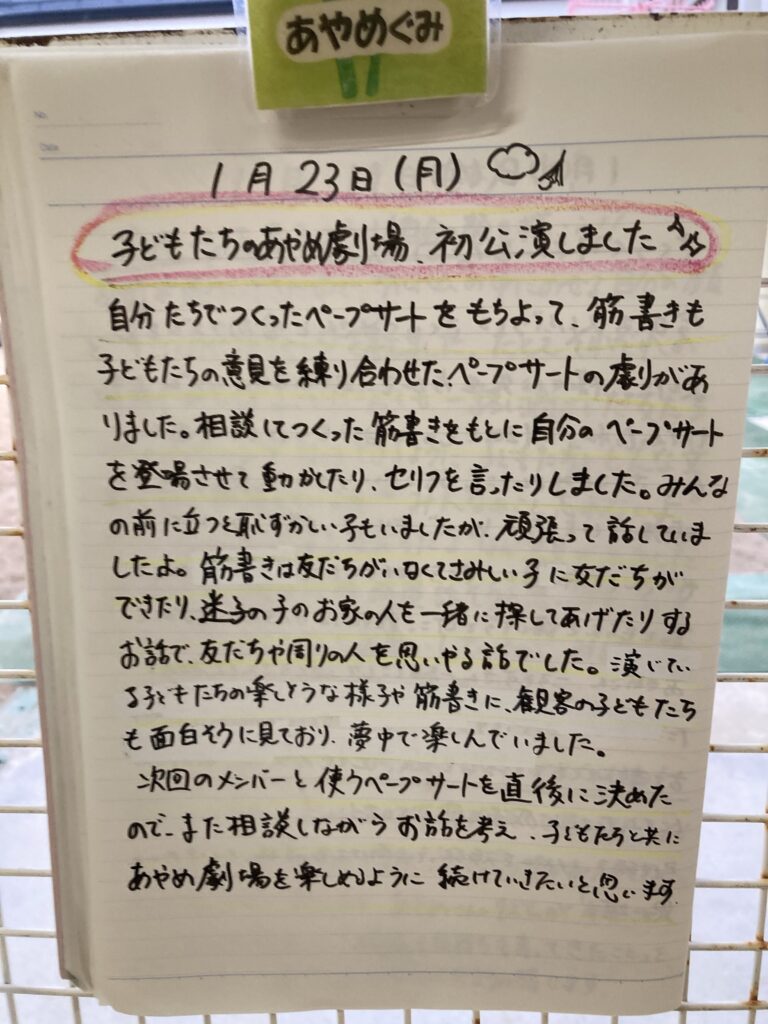 今朝は曇ったせいか昨日より暖かく感じましたが,日中は雪が降って帰りは冷え込みとても寒かったです。今日はあやめ劇場があり、かず君はゲスト出演したらしく、満足げな顔をしていました。