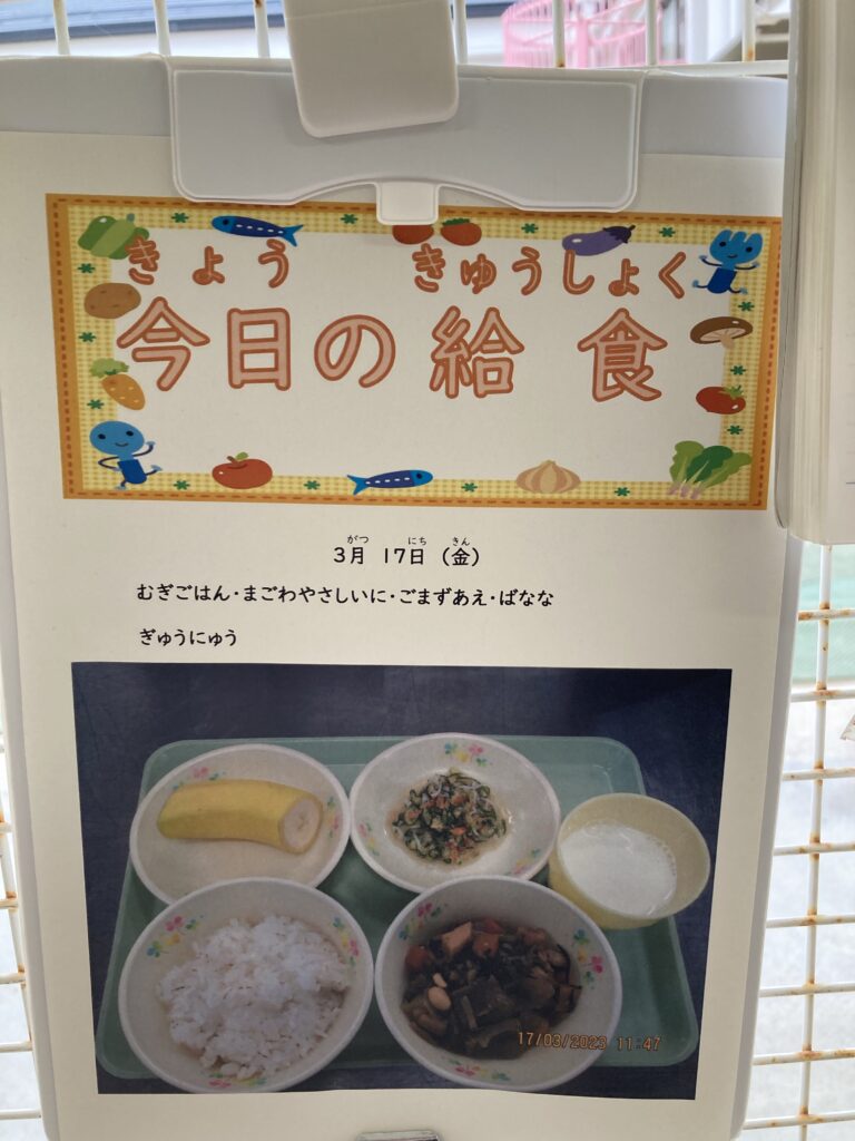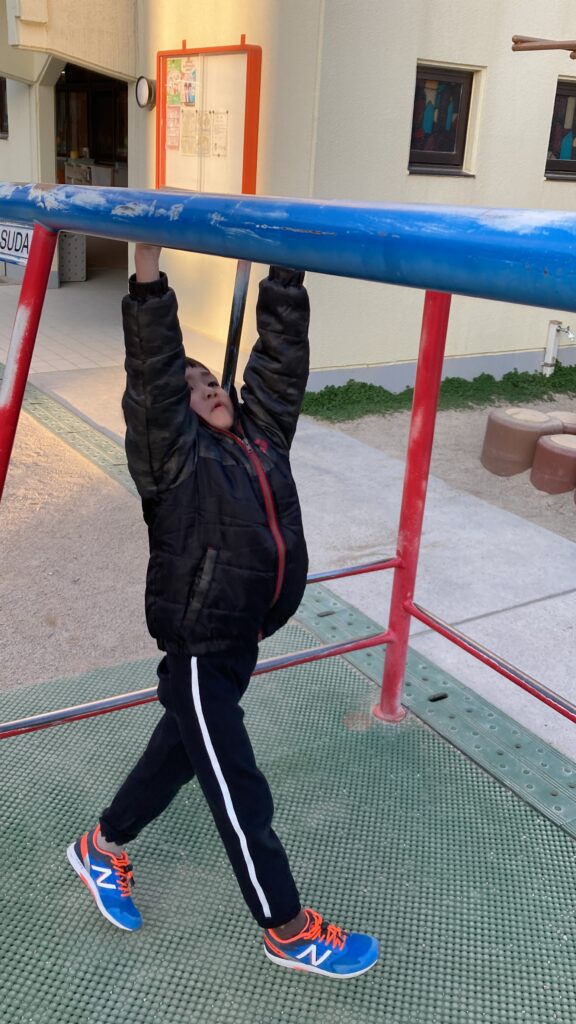今日は朝から冷たい風が吹き、小雨が断続的に降る寒い日でした。午後は晴れて少し暖かくなってきましたが、全体的には寒い日でした。休み明けでしたが、元気に頑張って登園しました。