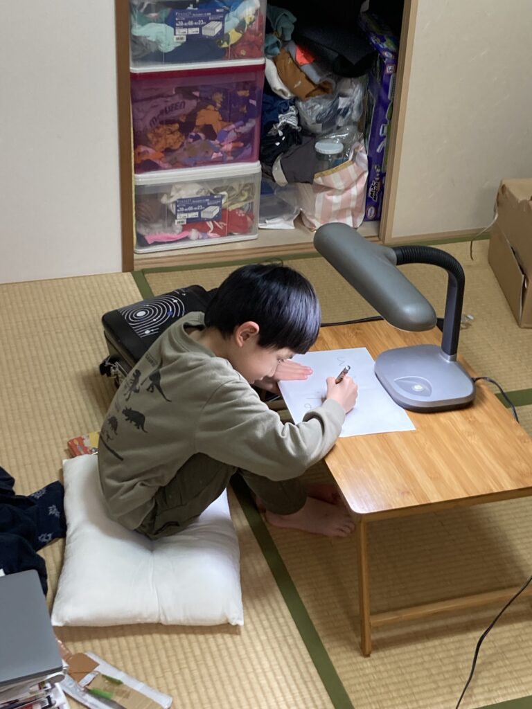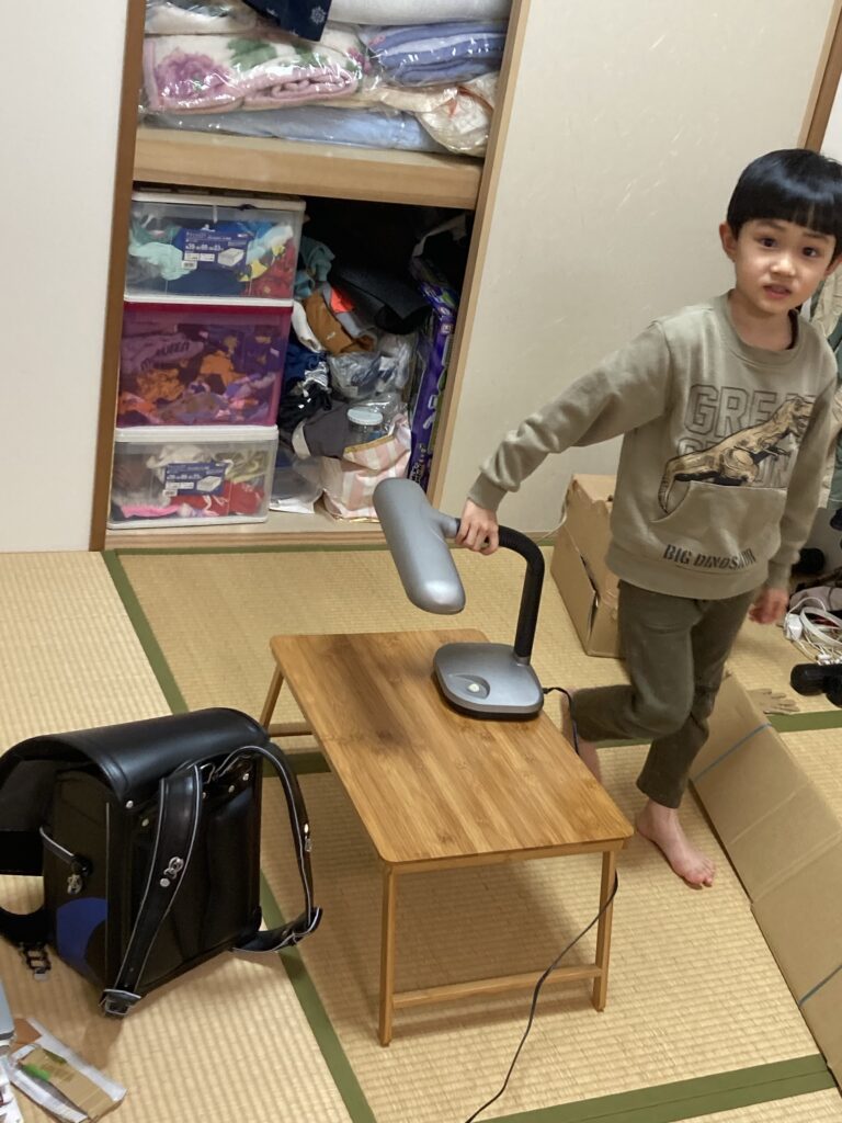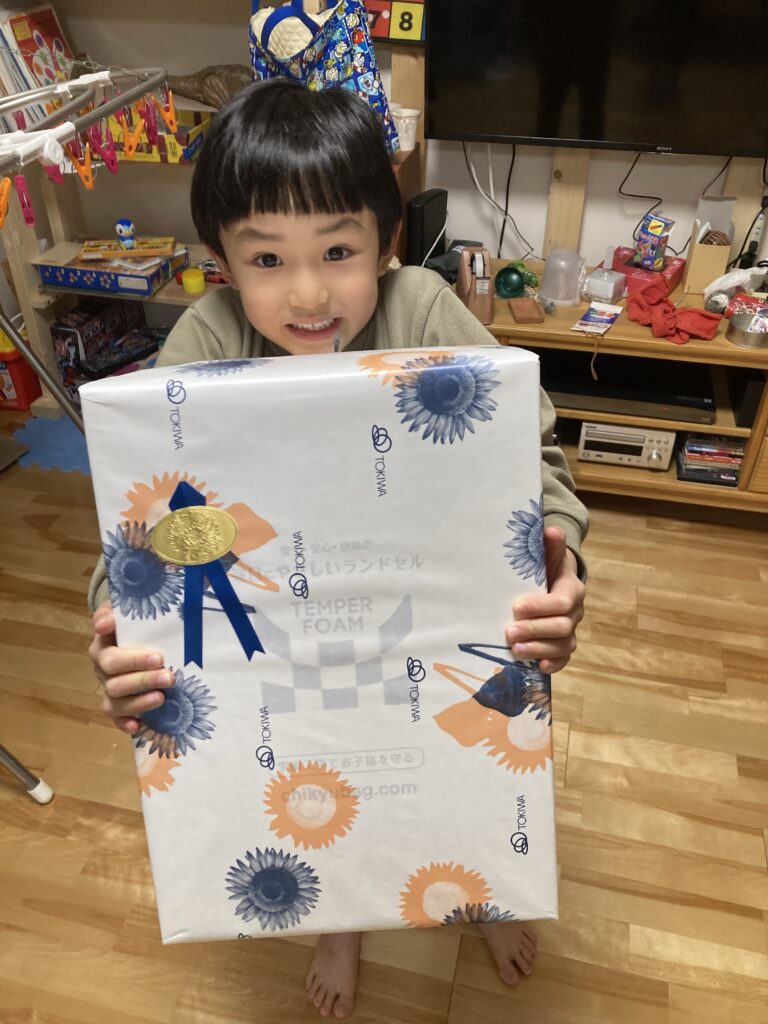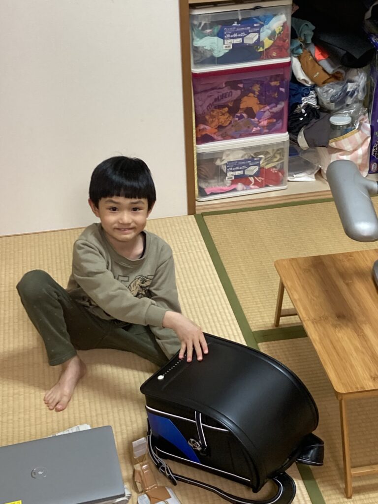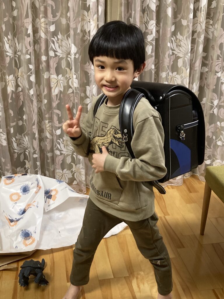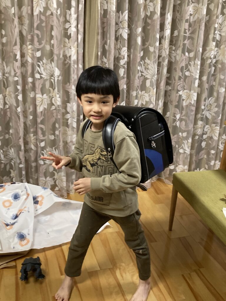 病み上がりですが、今日も元気に過ごしました。夕方トキハからランドセルが届きました!よっぽど嬉しいようで、ランドセルを背負って歩き回っていました。授業の自主練をしていました。
