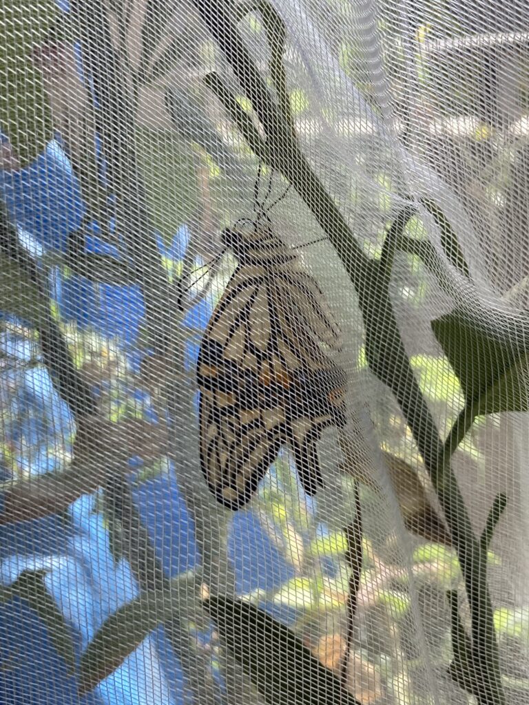 先週ゴミ捨て場の前に落ちていたツマグロヒョウモンの蛹を家に持って帰って保護していました。お尻の方が完全に蛹になっていなかったので、無事に羽化するか心配していましたが、今日無事に羽化しました。