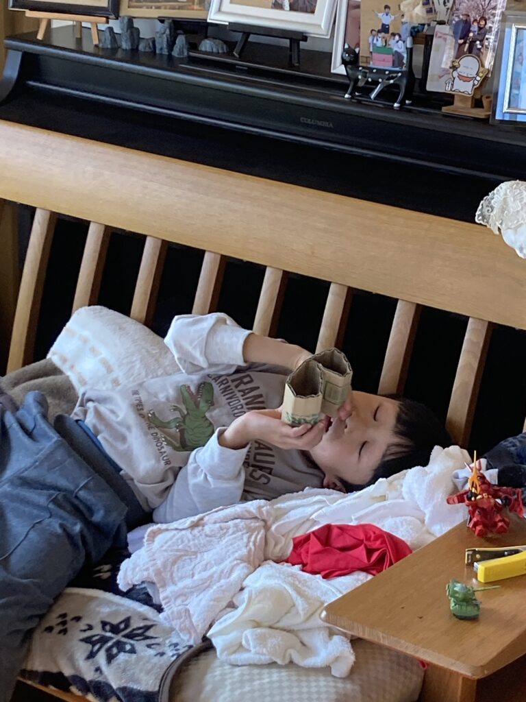 やっと熱が下がって2日が経過しました。今日は一足先にママが滋賀に戻りました。