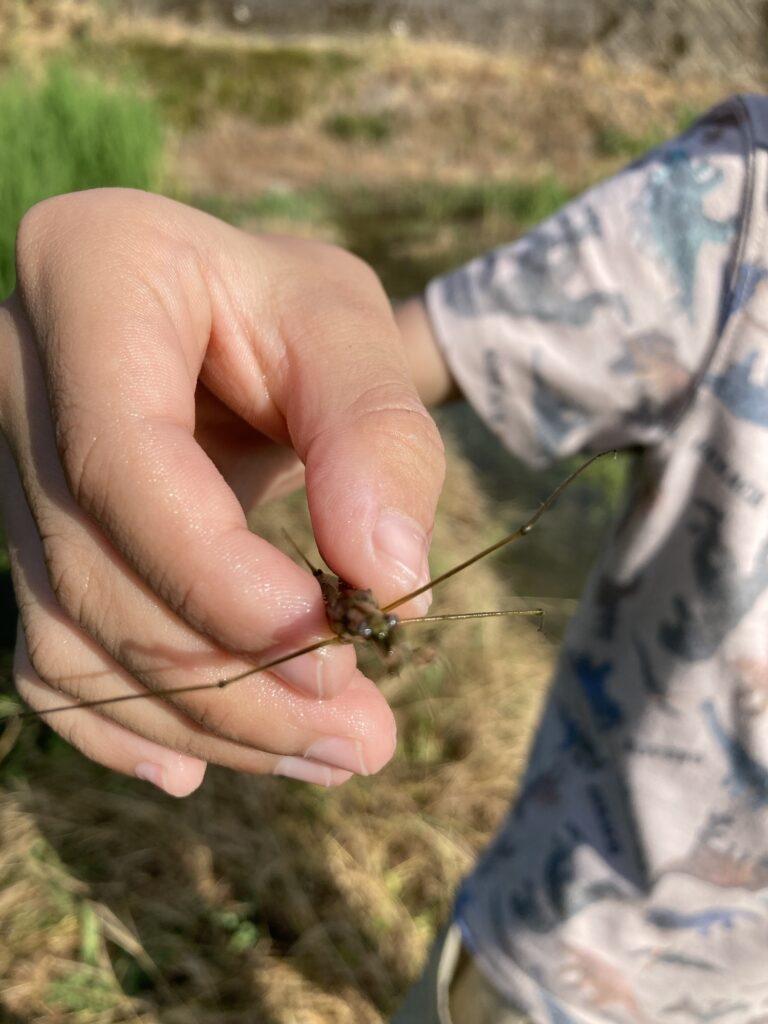 午後からミズカマキリを探しに安心院町に行きました。福岡県ではレッドブックに掲載されて大分県でも準絶滅危惧種なので、簡単に見つけられる気は全くしませんでしたが、炎天下の中3時間粘って2匹捕まえる事が出来ました。結果に満足出来て良かったです!しかし、滋賀に持ち帰るのが、1番厄介かも知れません。