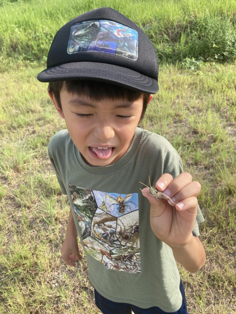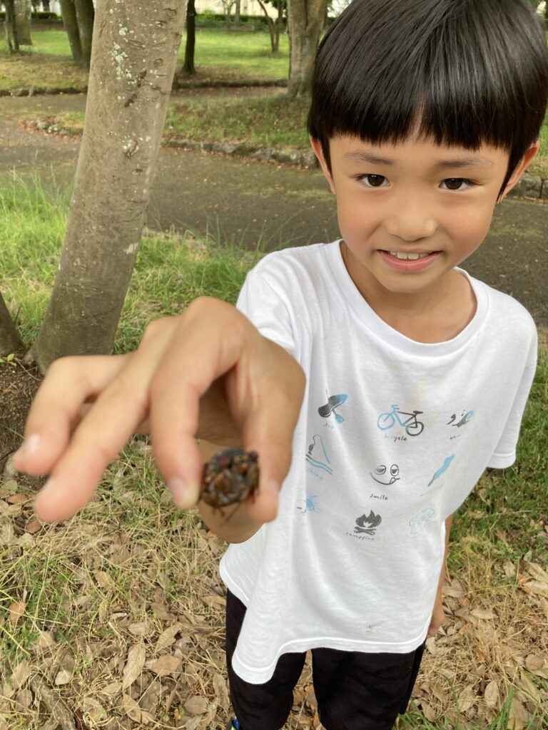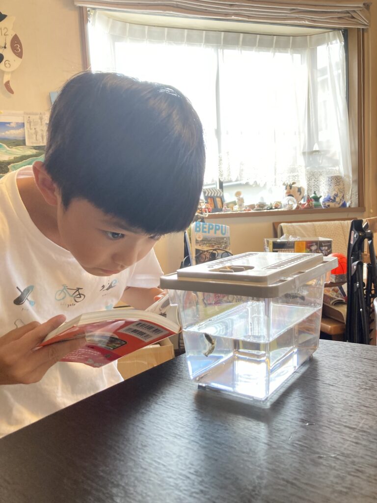 今日は昨日の疲れからか、のんびり起きました。朝から昨日捕まえた昆虫を観察していました。